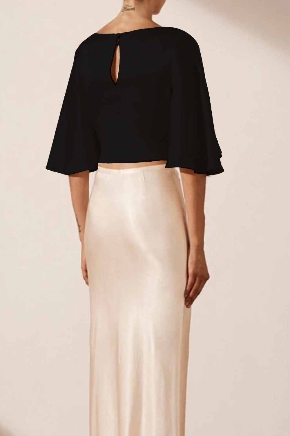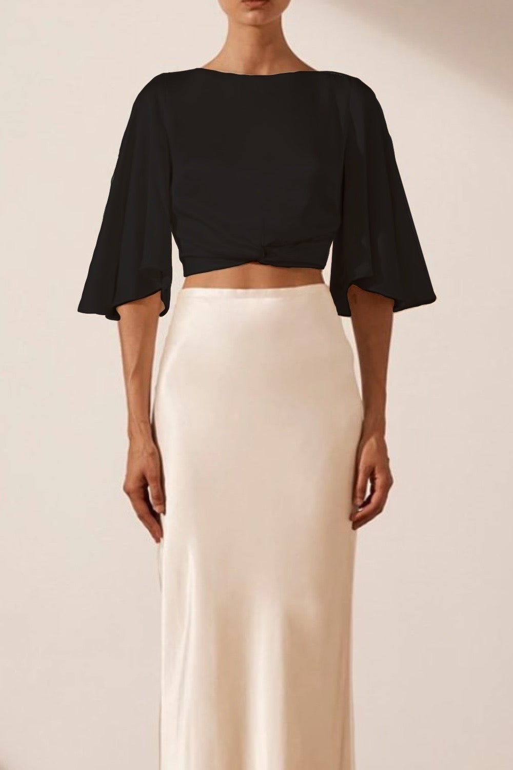 Here are some fashion styling tips to elevate your look with our Black Silky Crop Close Neck Top: