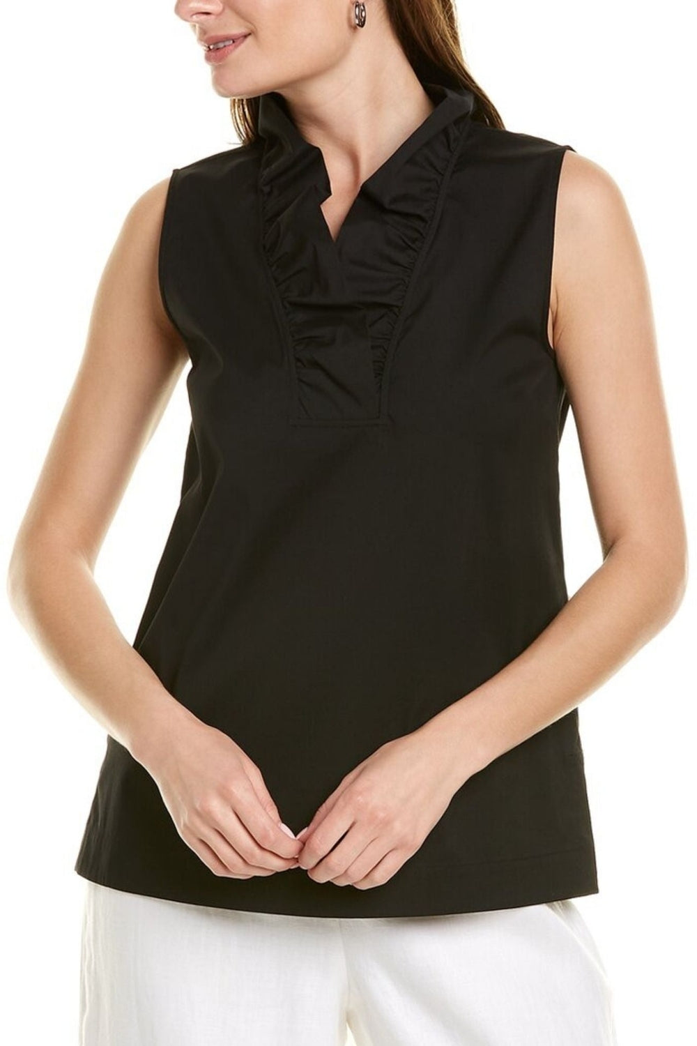 SKU:BlackSleevelessTopWithFrillatNeckline-XS