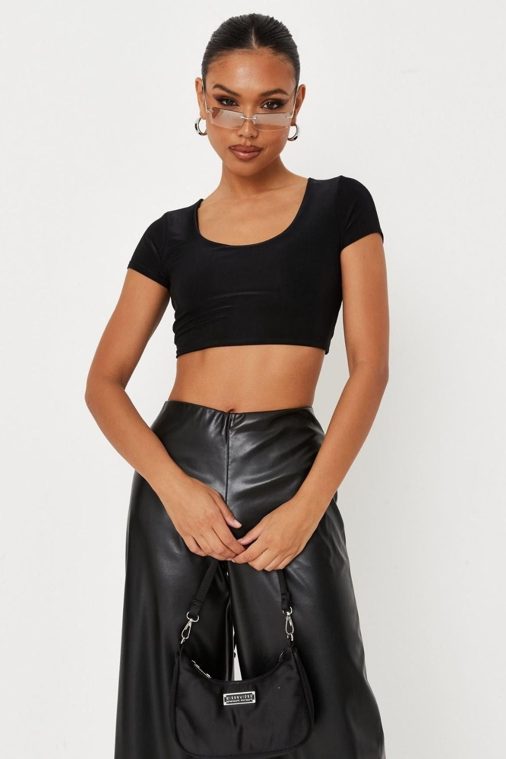 Type- Black slinky open tie back crop top