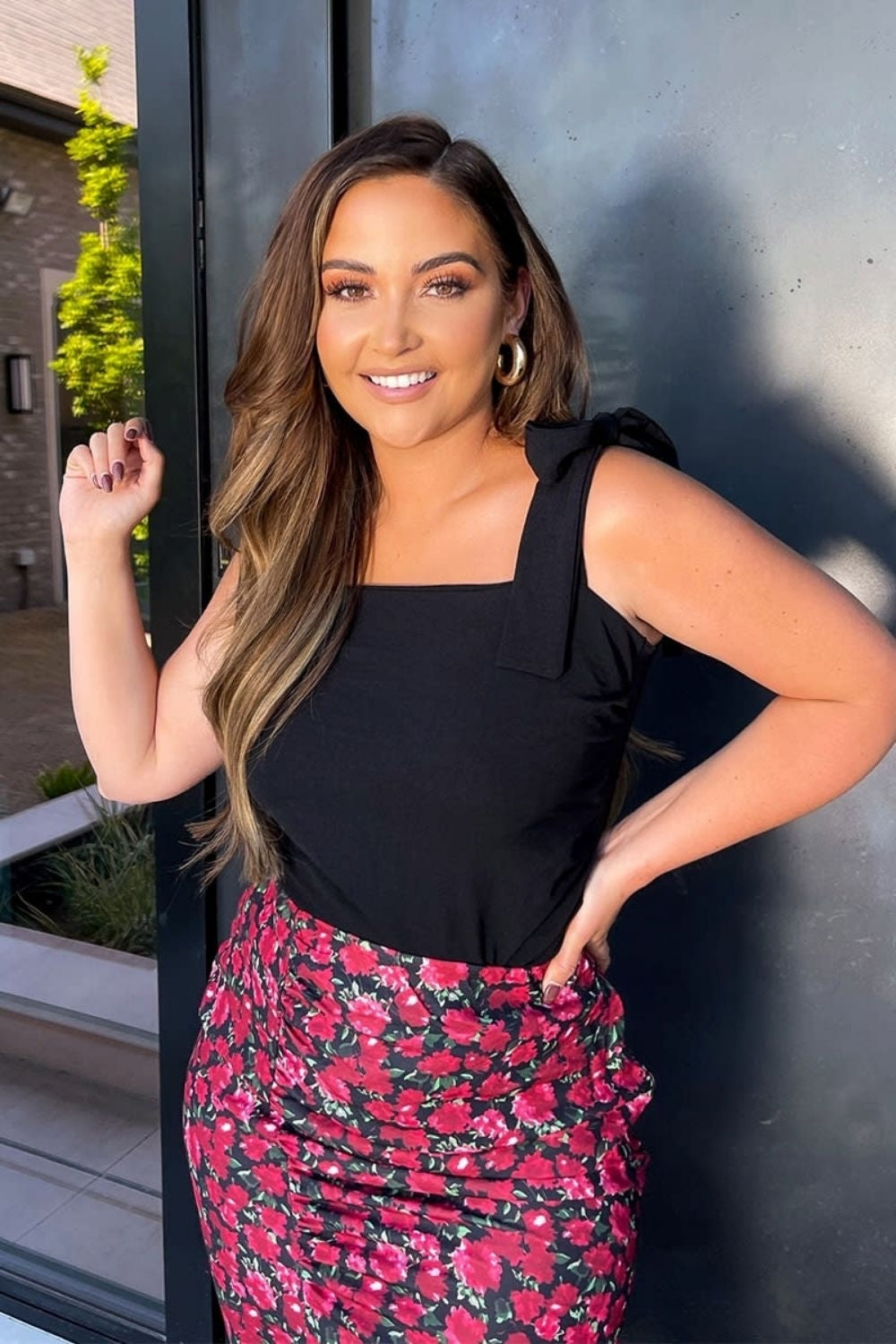 Embrace the allure of the Black Tie Shoulder Woven Bodysuit and let your style shine at every occasion. With its timeless design and flattering fit, this bodysuit is a wardrobe must-have for those who appreciate fashion that stands the test of time.