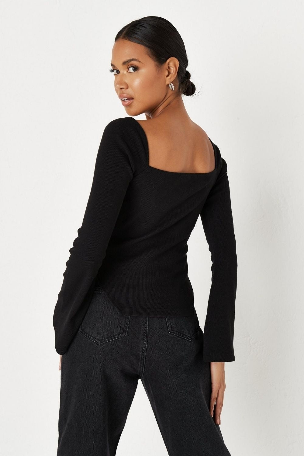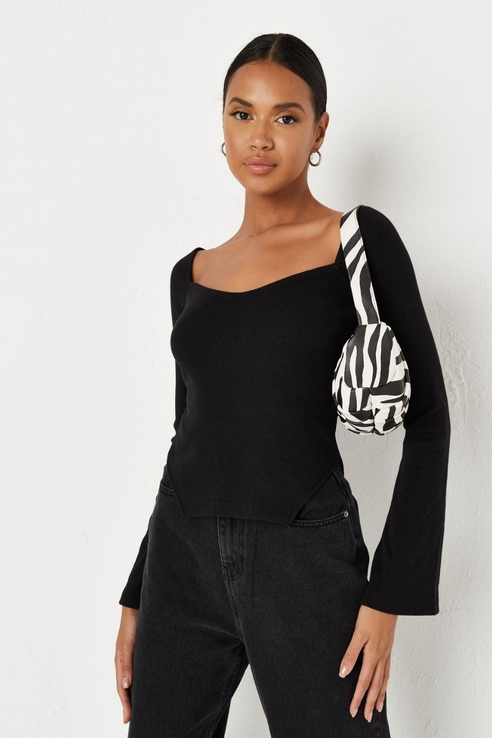 SKU:Blackwhiteribasymmetrichemmilkmaidtop-XS