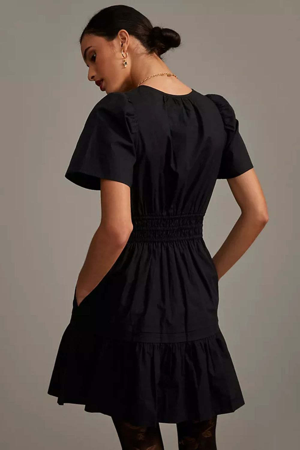 SKU:BlackWovenCuteSummerMiniDress-XS