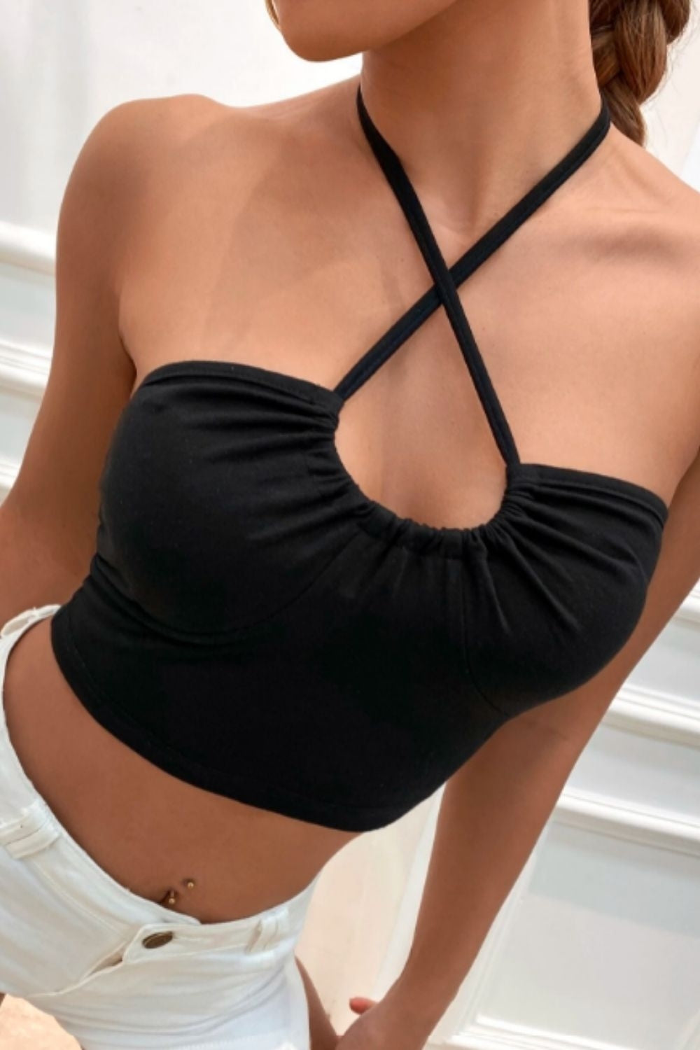 SKU:BlackCrisscrossTieBackHalterTop-XS
