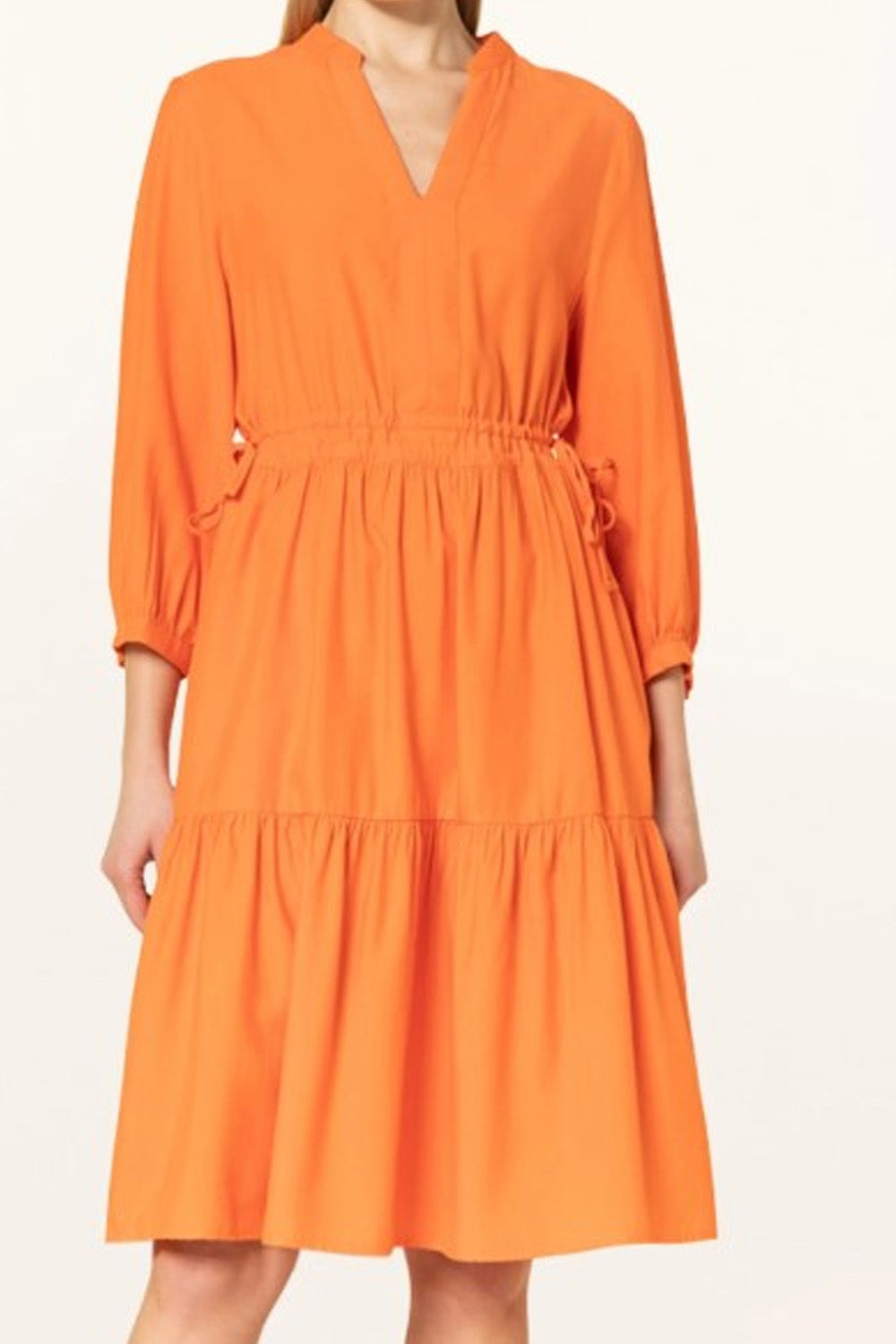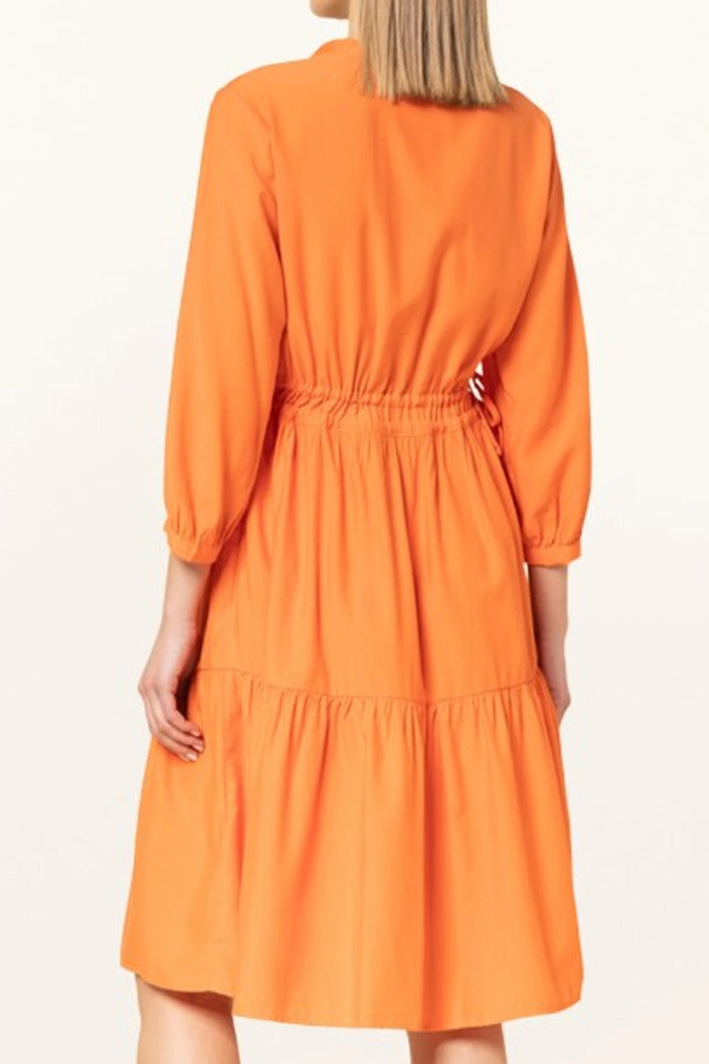 Type-Bountiful Orange Dress, Color-Orange, Neck type-Stand-up collar neck, Sleeve Length-Below elbow length, Fit-Regular, Fabric-Rayon