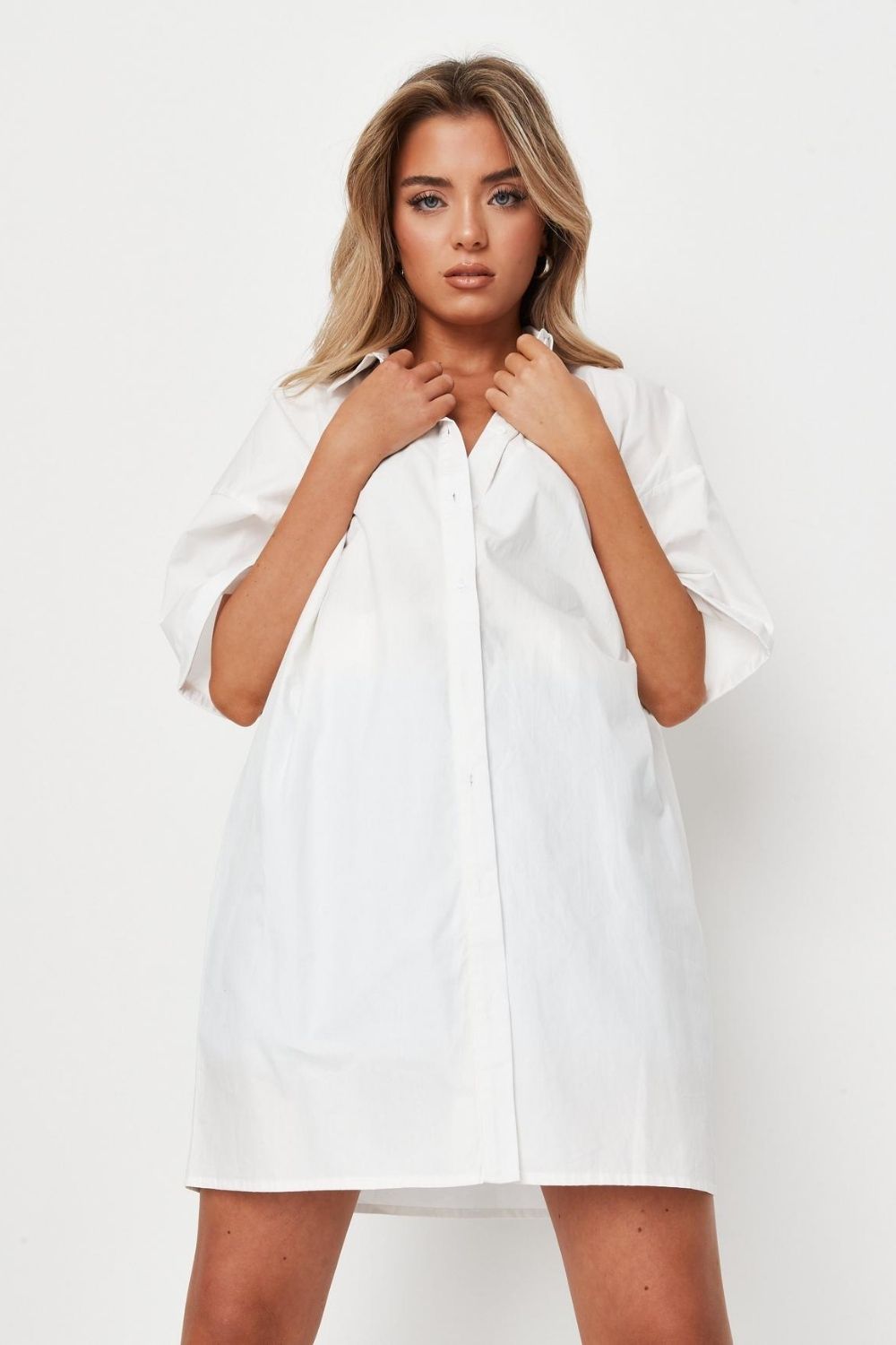 Effortless Elegance: Embrace a minimalist look by pairing the Boxy White Shirt Dress with nude sandals and delicate gold jewelry. A sleek bun or loose waves will complete the effortlessly elegant vibe.