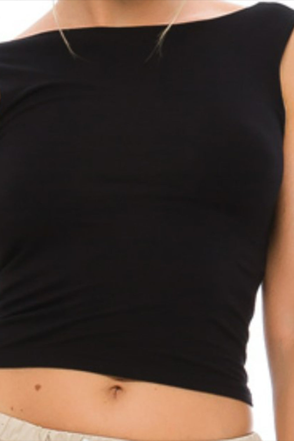Type-Brazen Black Top, Color-Black, Neck type-High boat neck, Sleeve Length-Sleeveless, Fit-Body Fit, Fabric-Poly Lycra