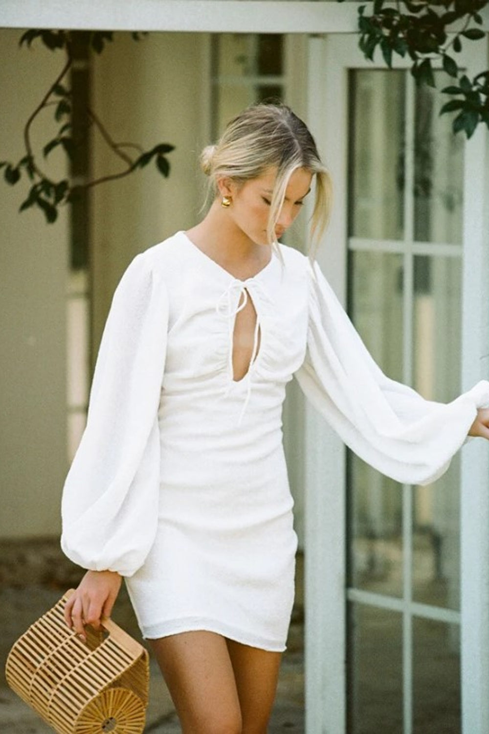 Type-Bryansk White Dress, Color-White, Neck type-Sweetheart neck, Sleeve Length-Half Sleeve, Fit-Slim, Fabric-Rayon