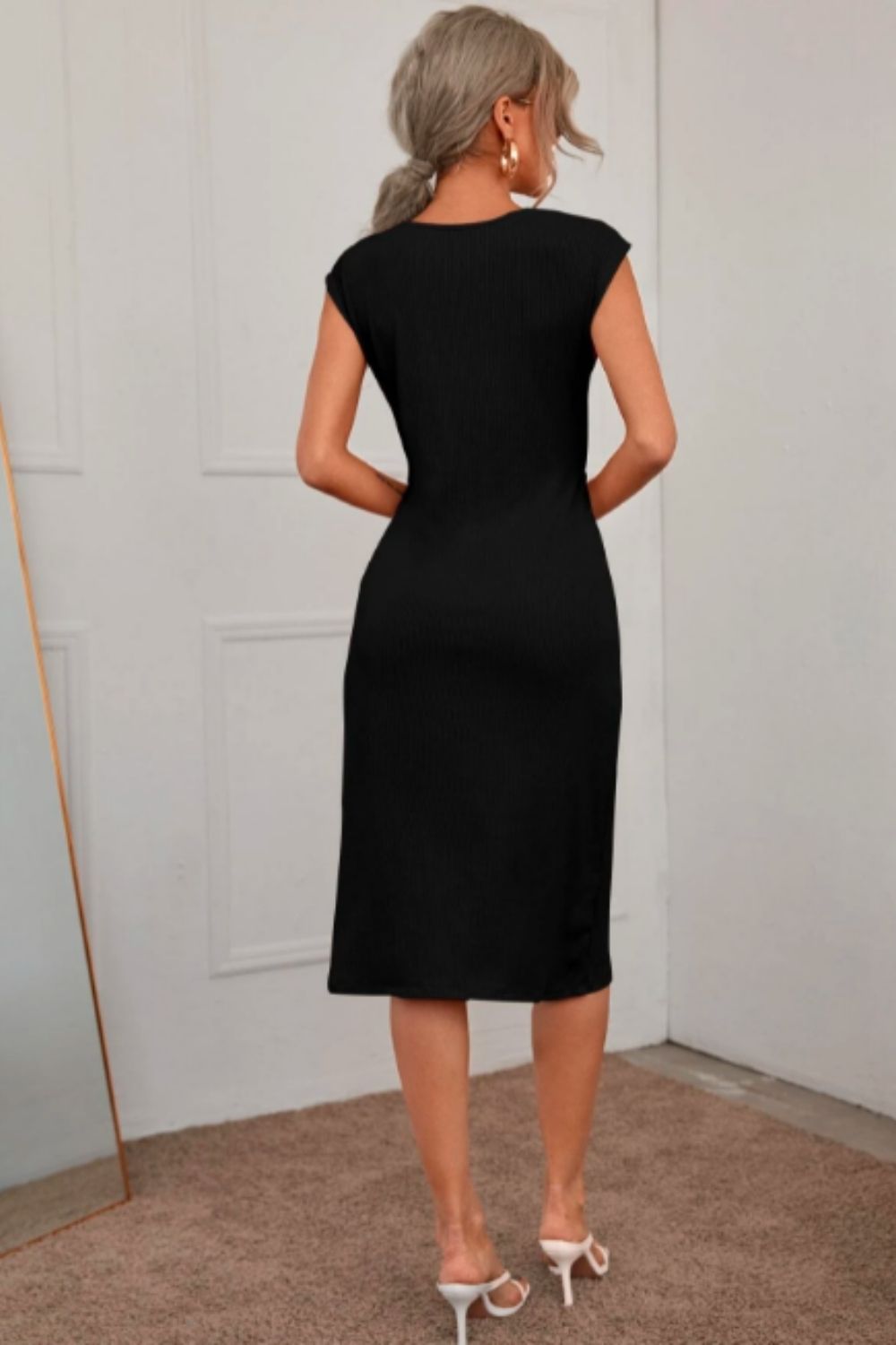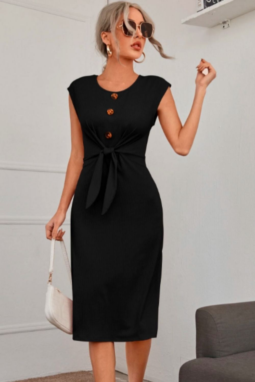 SKU:ButtonDetailTieFrontMidiDress-XS