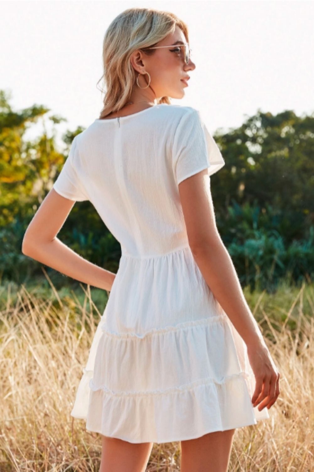 Button Down Layered Dress White
