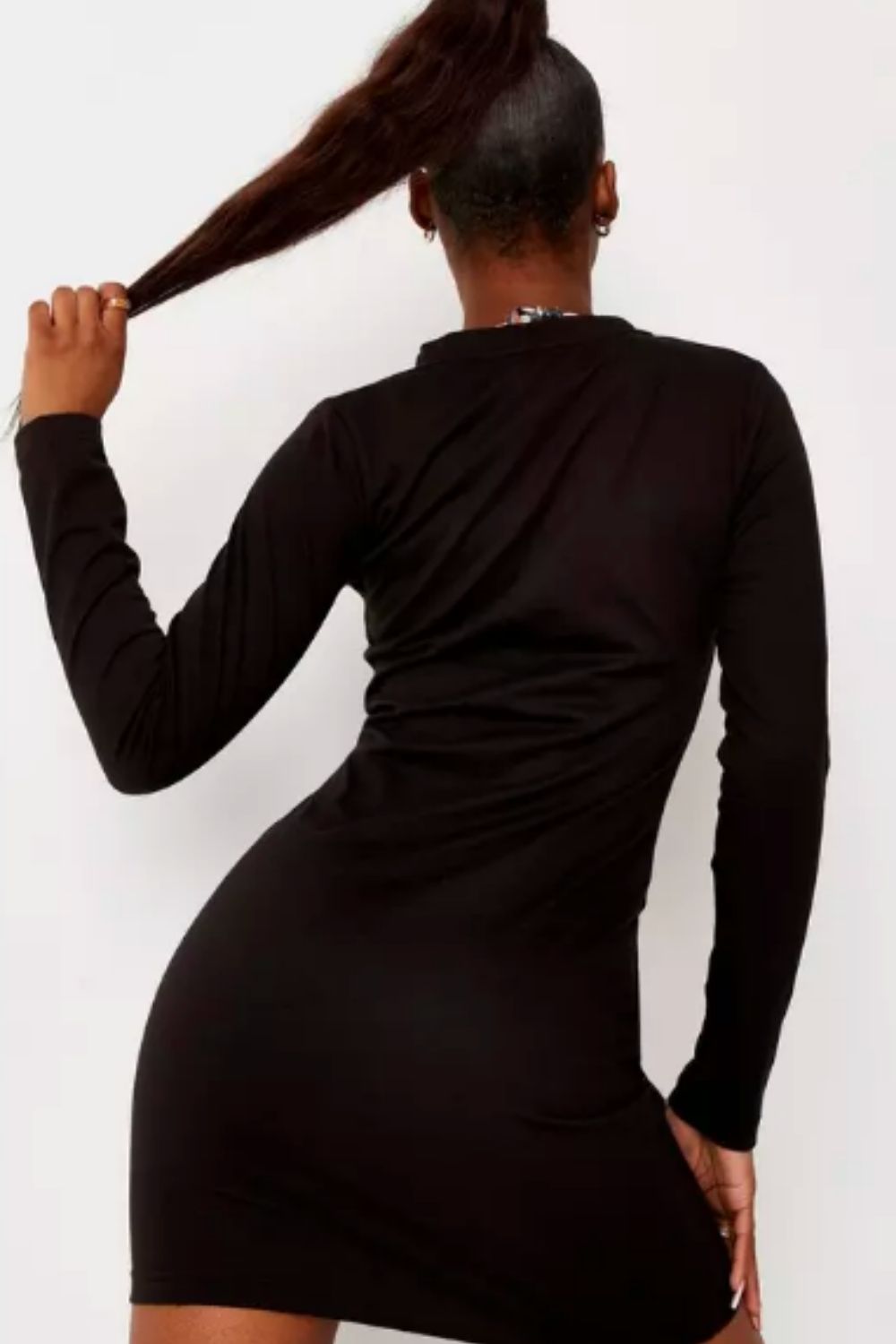 SKU:ButtonDownLongSleeveMiniDress-XS