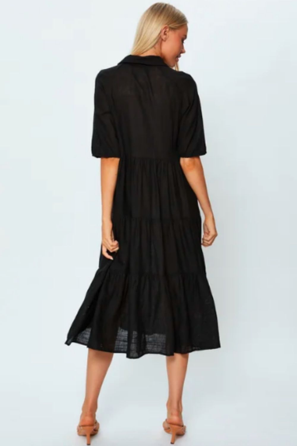 SKU:ButtonDownRuffleFlareMidiDress-XS