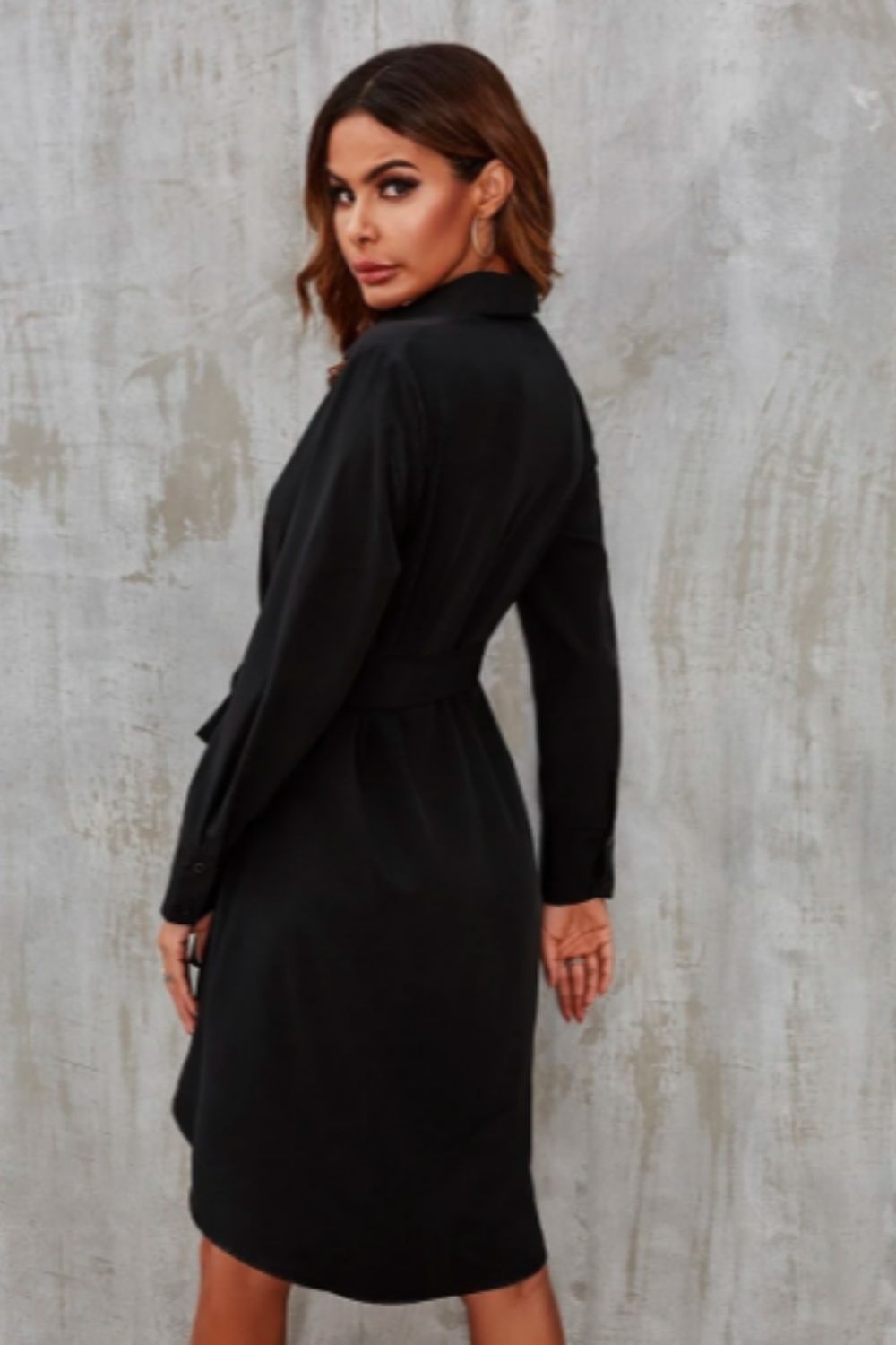 Elevate your style effortlessly with our Button Down Shirt Dress in Black – a wardrobe staple that seamlessly transitions from day to night with timeless elegance.