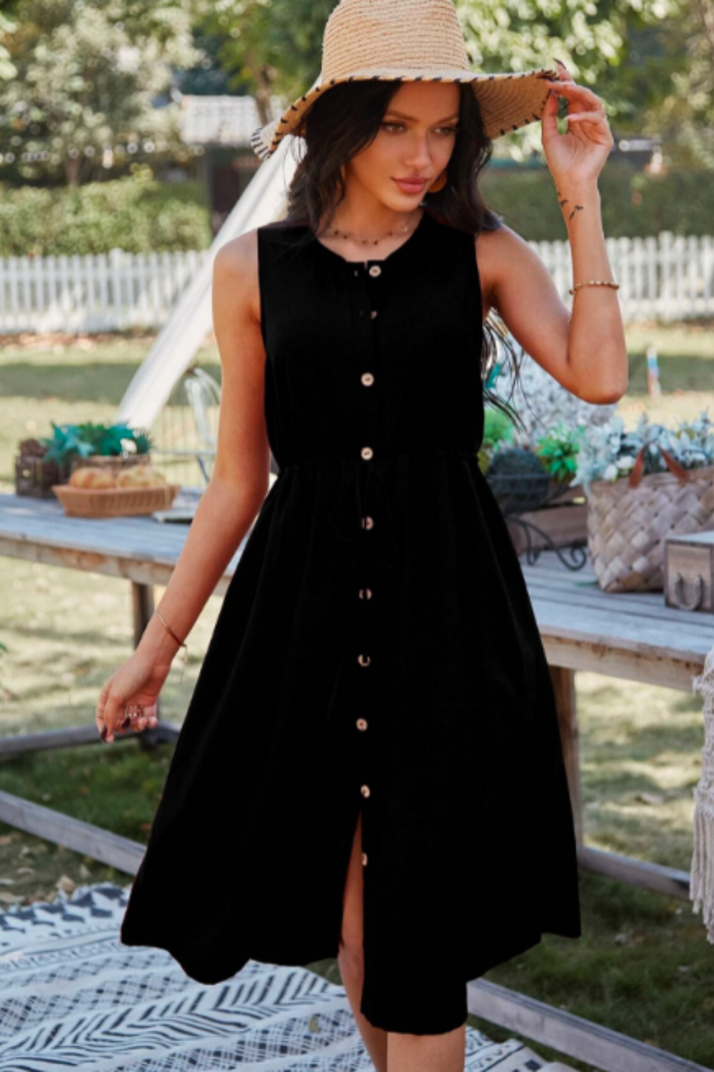 - Type: Button Down Sleeveless Round Neck Dress