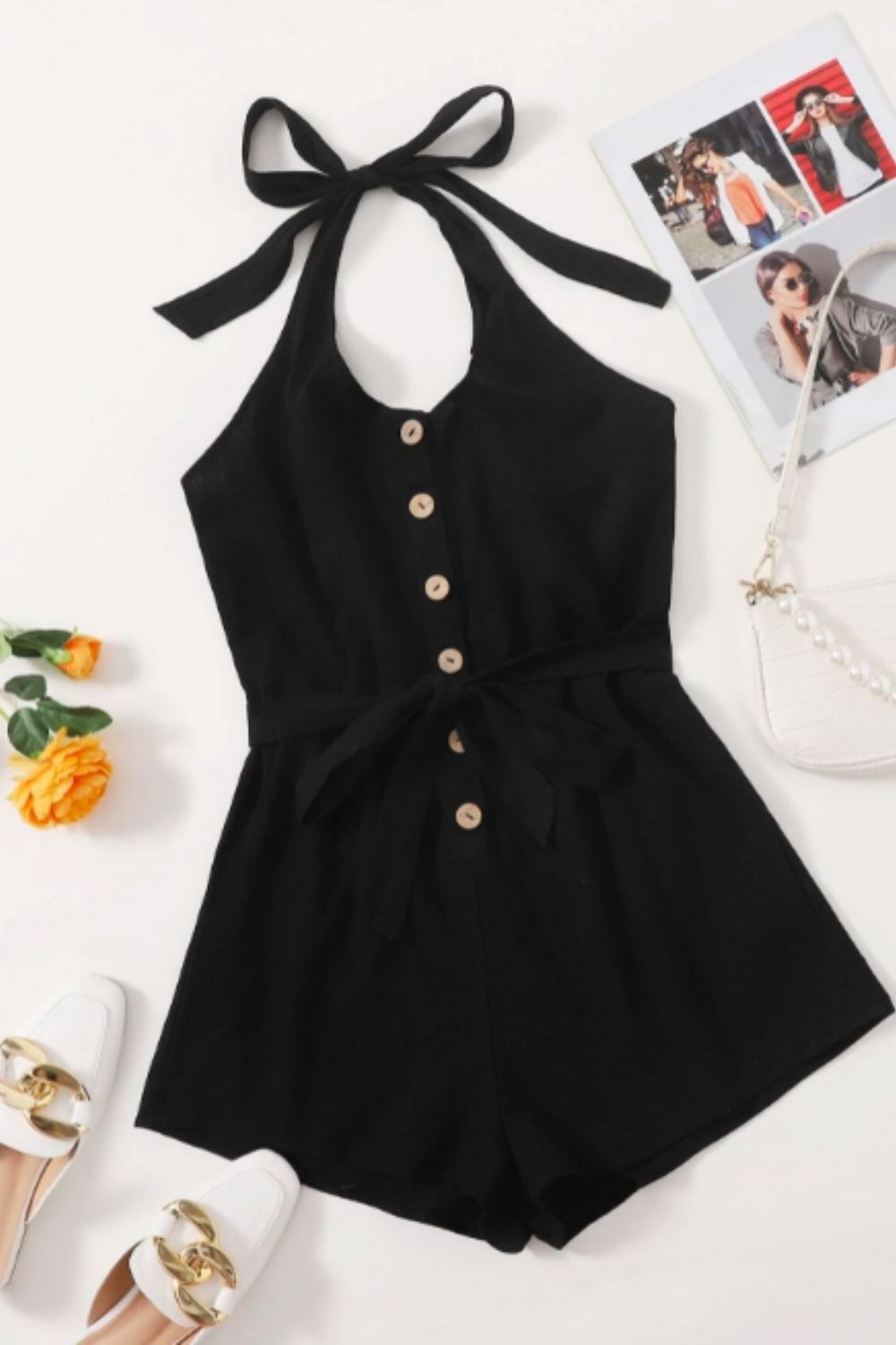 - Type: Button Down Tie-waist Romper