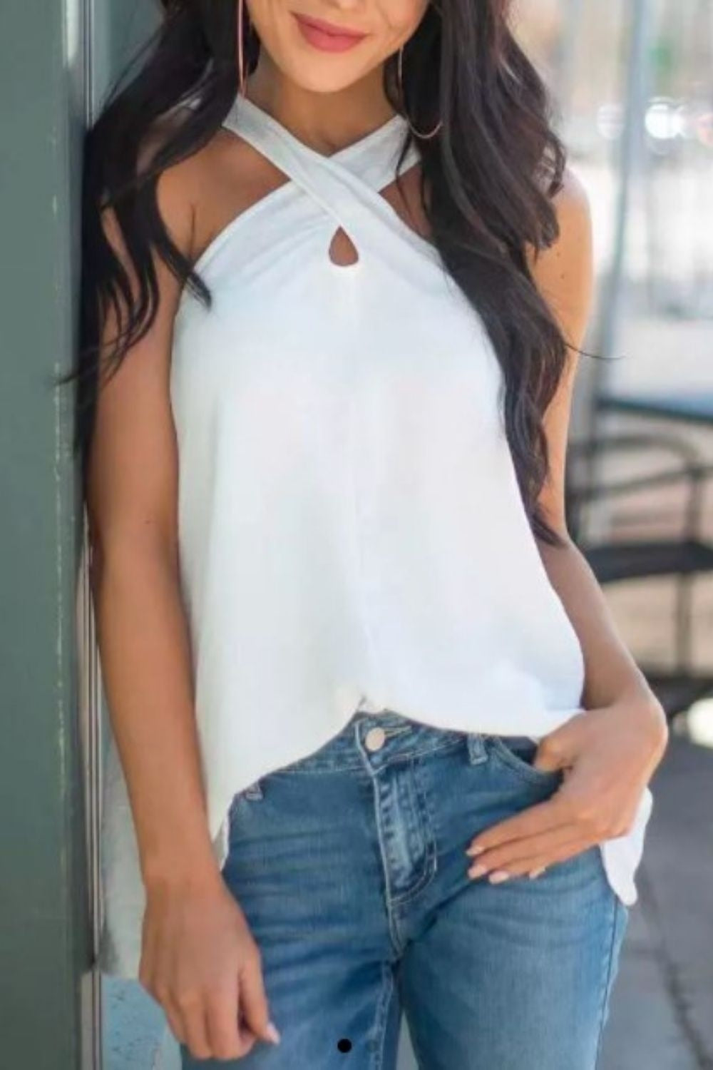 SKU:ButtonHollowOutCrissCrossCamisoleWhite-XS