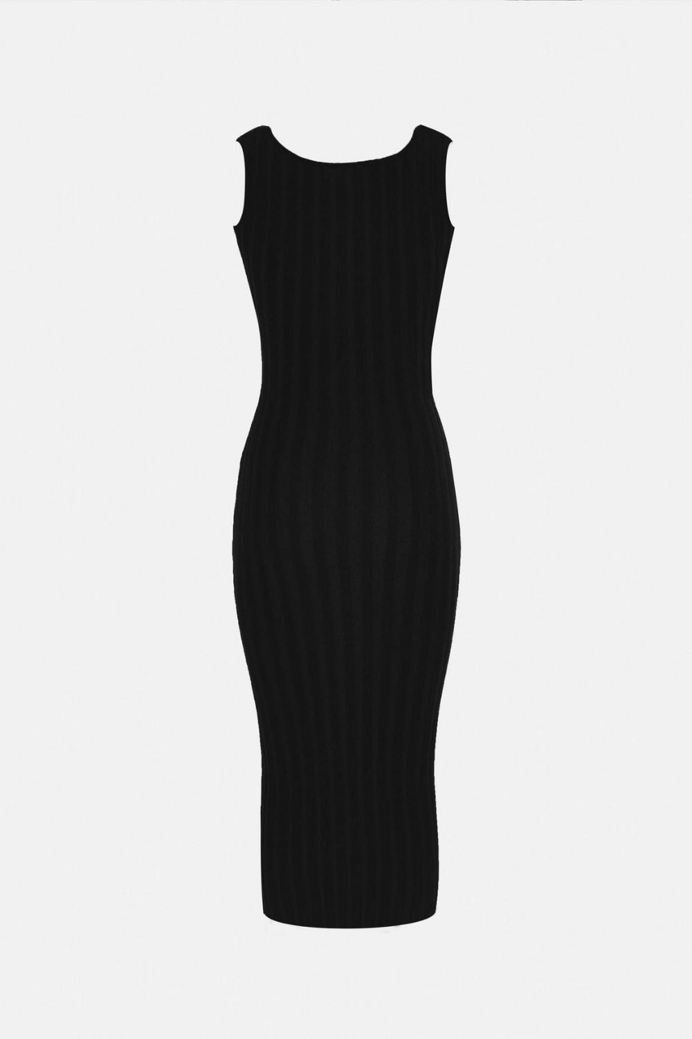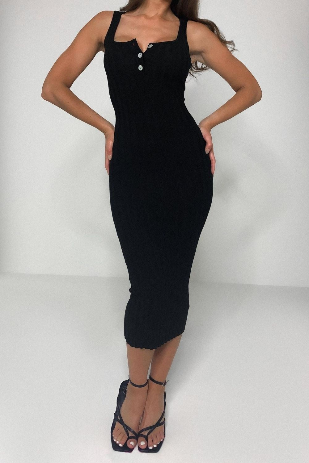 SKU:ButtonOpenAtNeckBlackMidaxiDress-XS