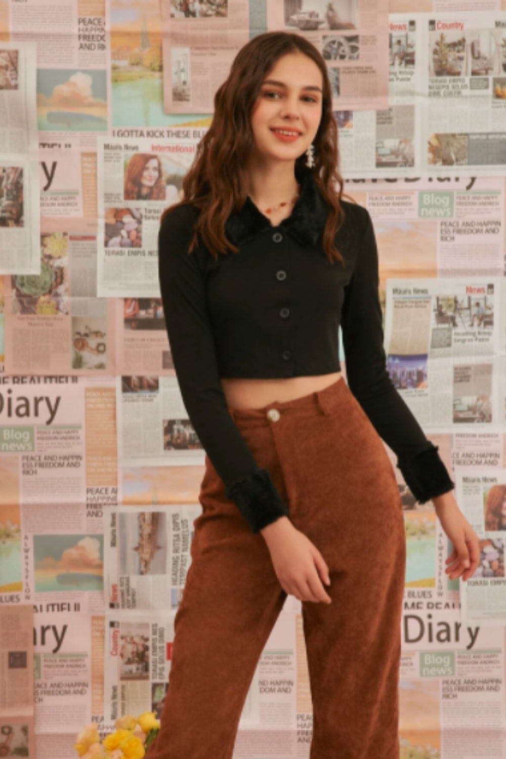 SKU:ButtonOpenFrontFullSleevesCropTop-XS