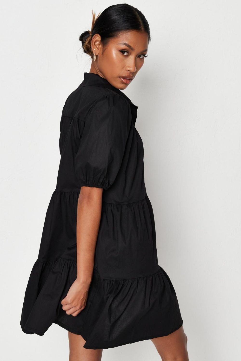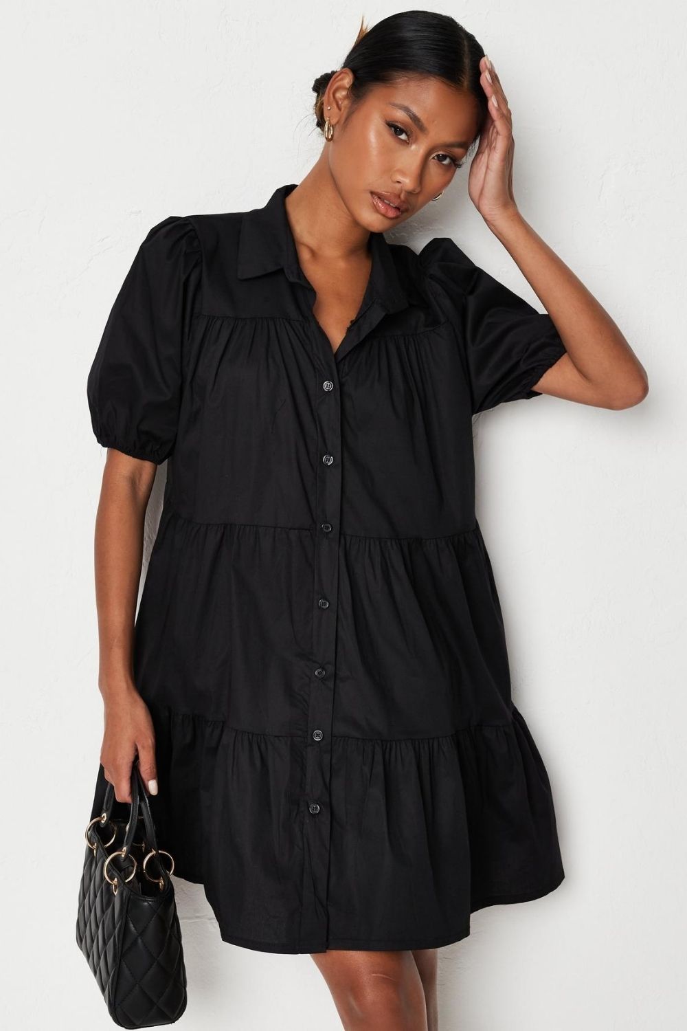 SKU:ButtonOpenFrontRuffledBlackDress-XS