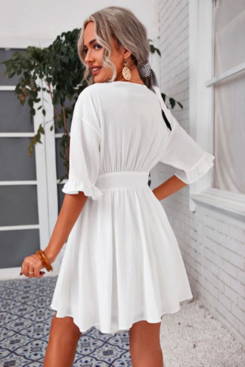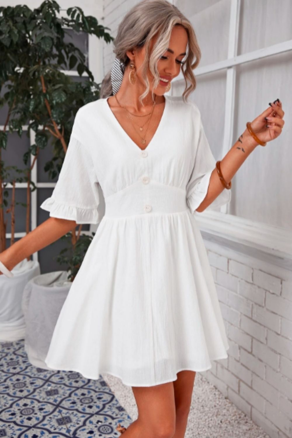 SKU:ButtonedFrontFrillTrimCuffDress-XS
