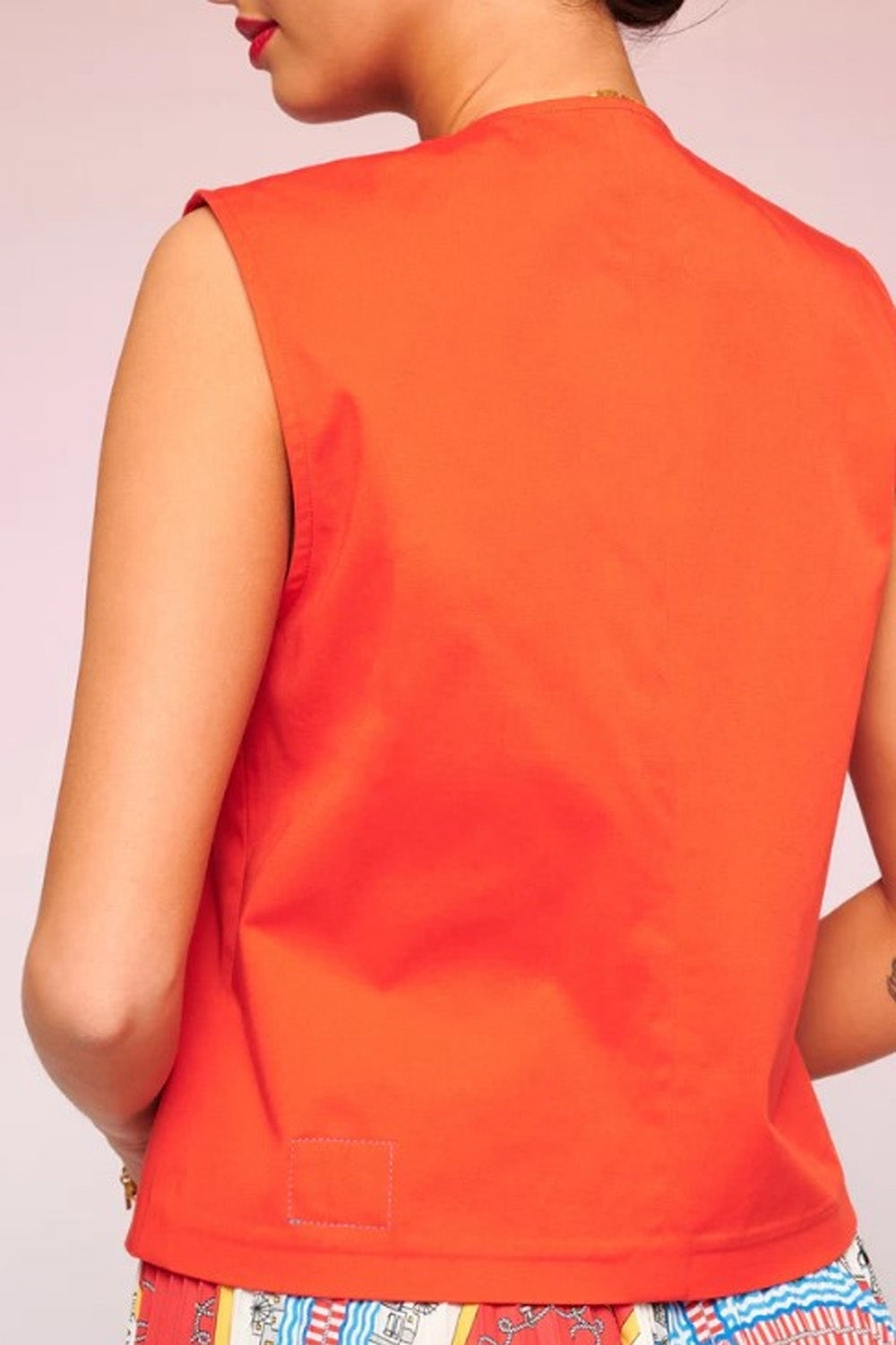 Type-Cacophony Orange Top, Color-Orange, Neck type-Deep v neck, Sleeve Length-Sleeveless, Fit-Body Fit, Fabric-Poplin