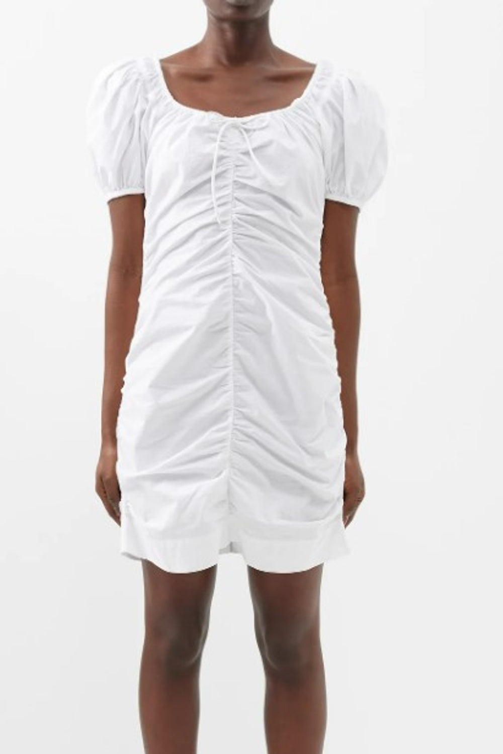 Type-Calgary White Dress, Color-White, Neck type-Square neck, Sleeve Length-Half Sleeve, Fit-Body Fit, Fabric-Poplin