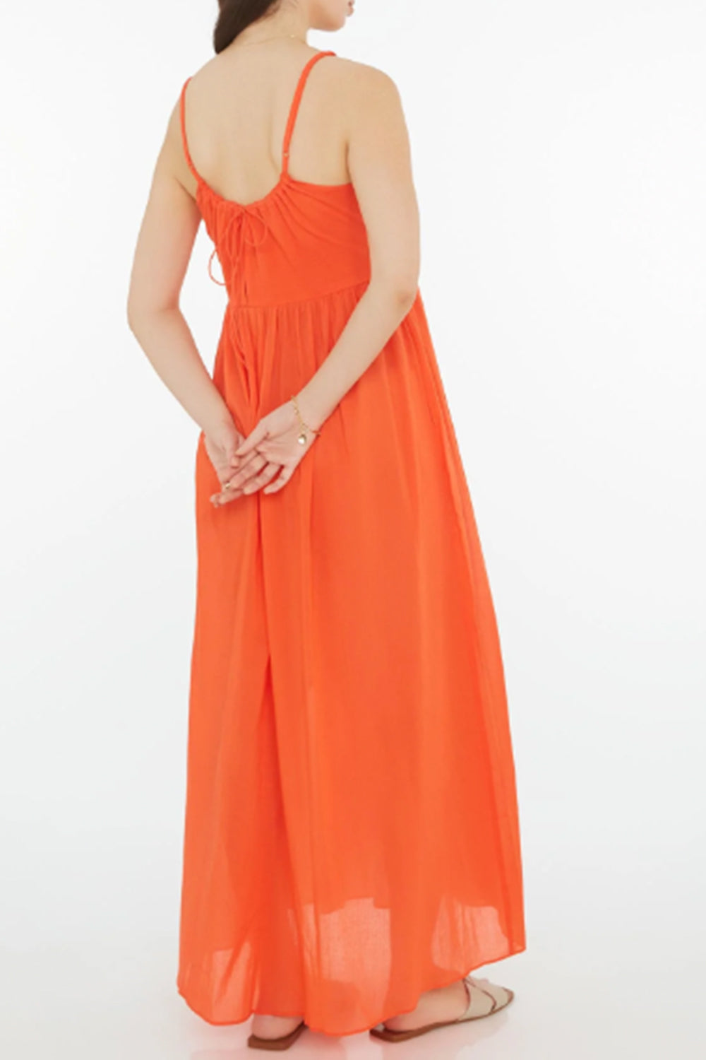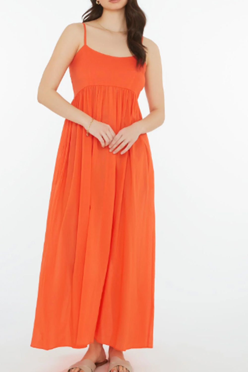 Type-Canary Orange Dress Color-Orange Neck type-U Neck Sleeve Length-Sleeveless Fit-Regular Fabric-Rayon