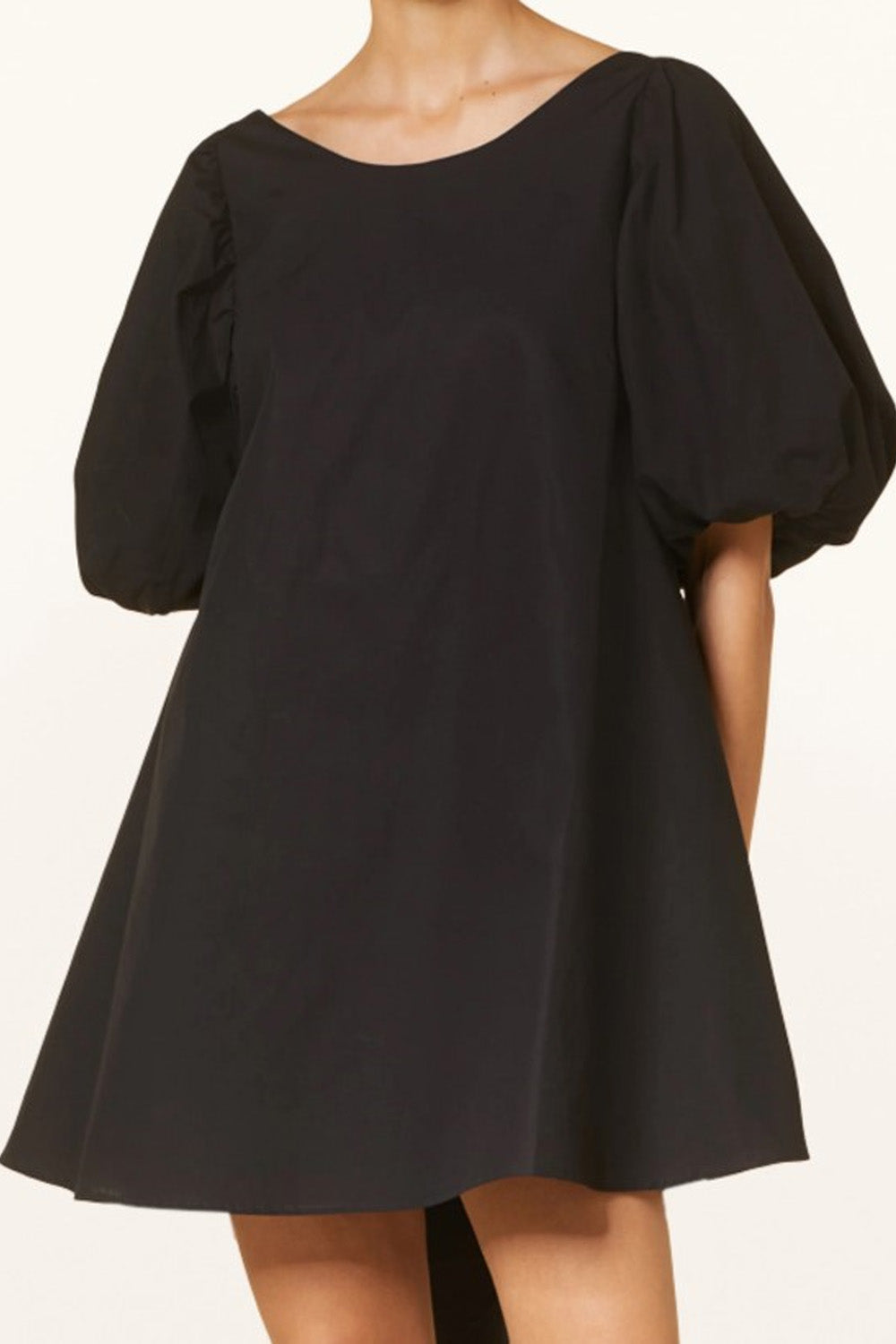 Type-Canopy Black Dress, Color-Black, Neck type-Round neck, Sleeve Length-Half Sleeve, Fit-Regular, Fabric-Poplin