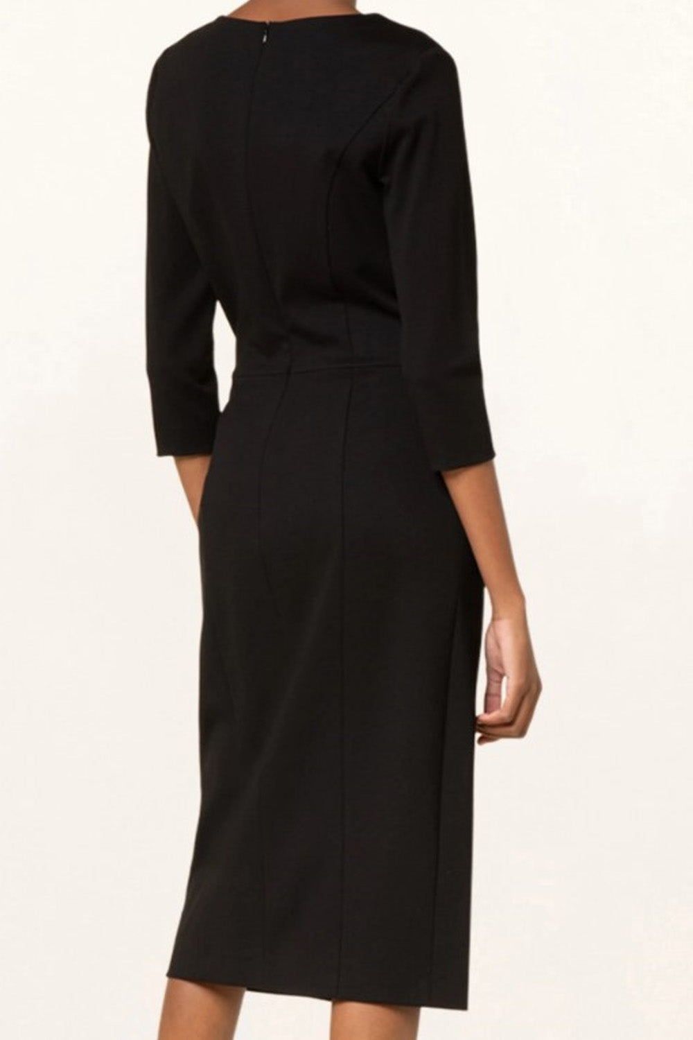 Type-Canvas Black Dress, Color-Black, Neck type-V Neckline, Sleeve Length-Below elbow length, Fit-Body Fit, Fabric-Poly Lycra