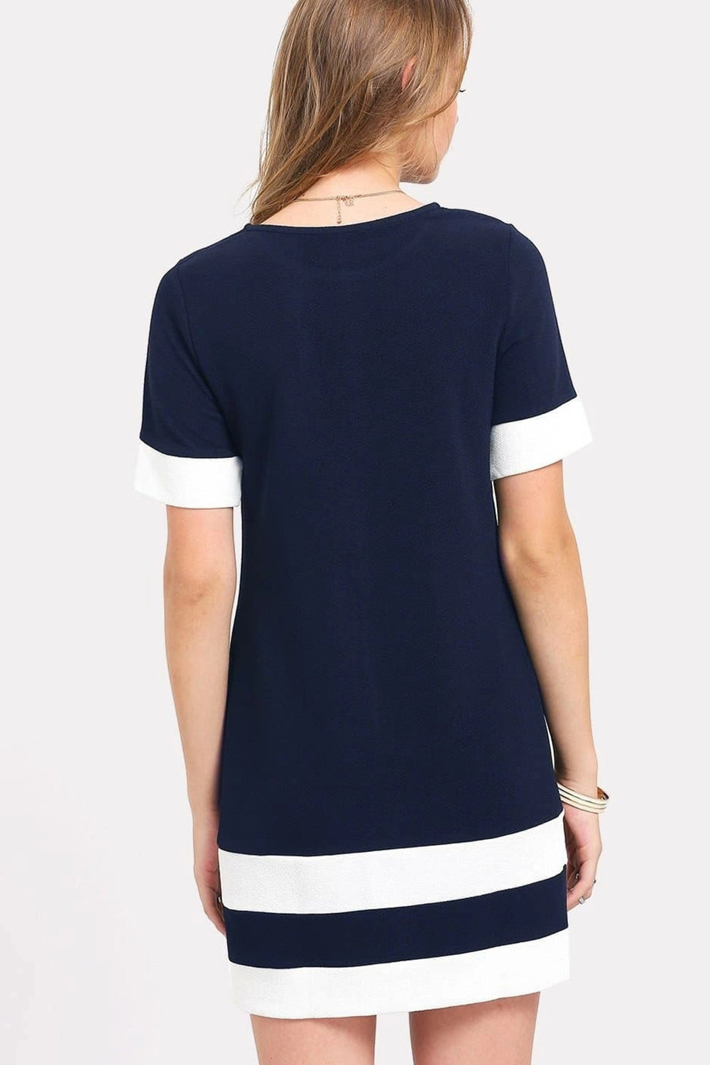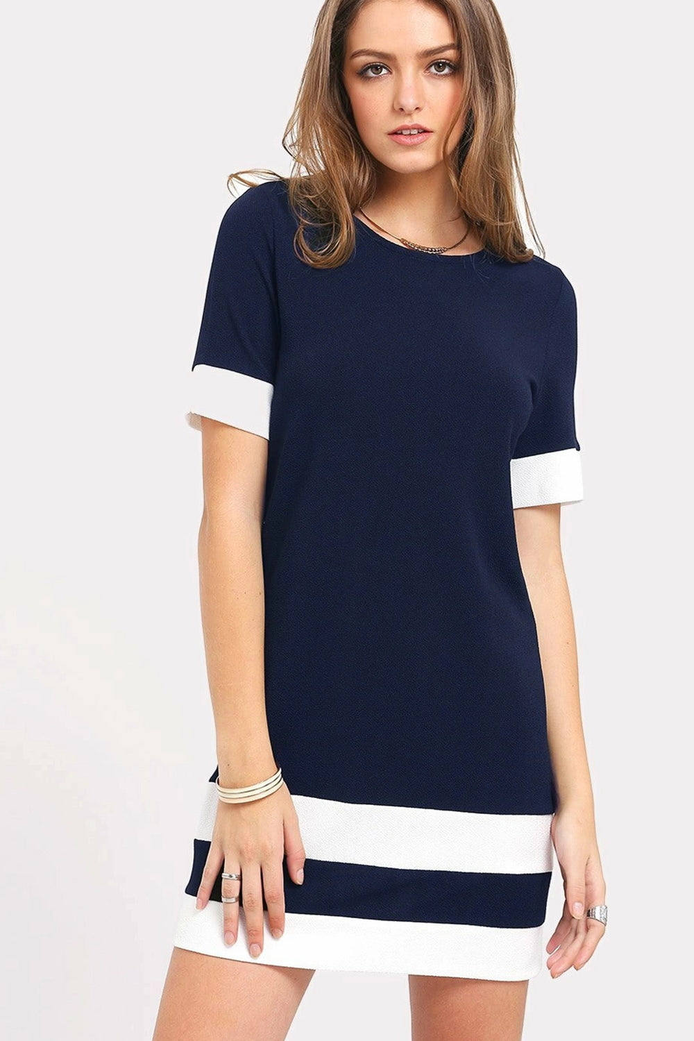 This casual looking dark blue dress is sure for a mood. The contrast stripe at the bottom makes it different from the others.