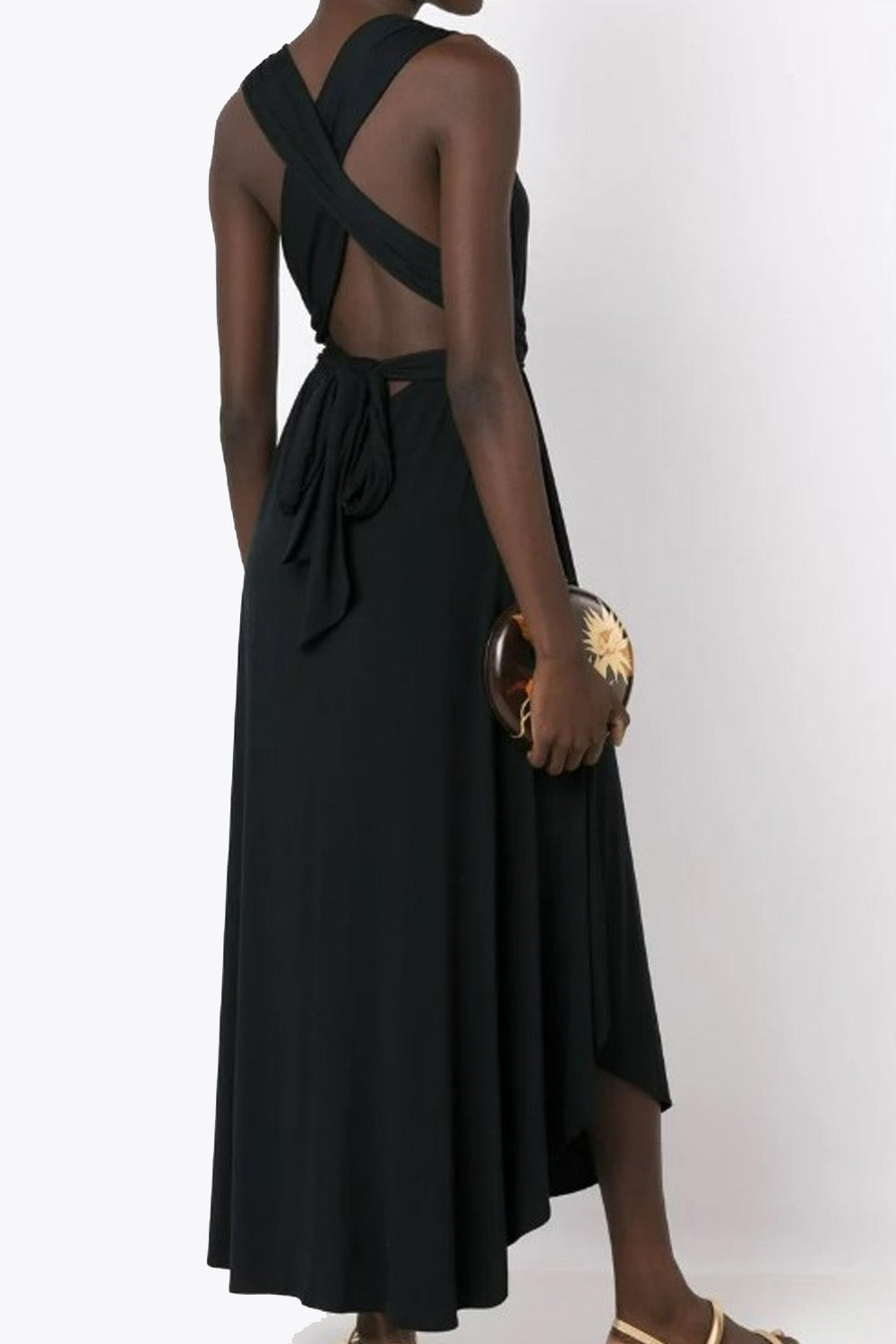 Type-Celesta Black Dress, Color-Black, Neck type-V neck, Sleeve Length-Sleeveless, Fit-Regular, Fabric-Poplin