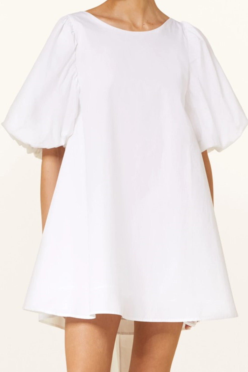 Type-Charm White Dress, Color-White, Neck type-Round neck, Sleeve Length-Half Sleeve, Fit-Regular, Fabric-Poplin