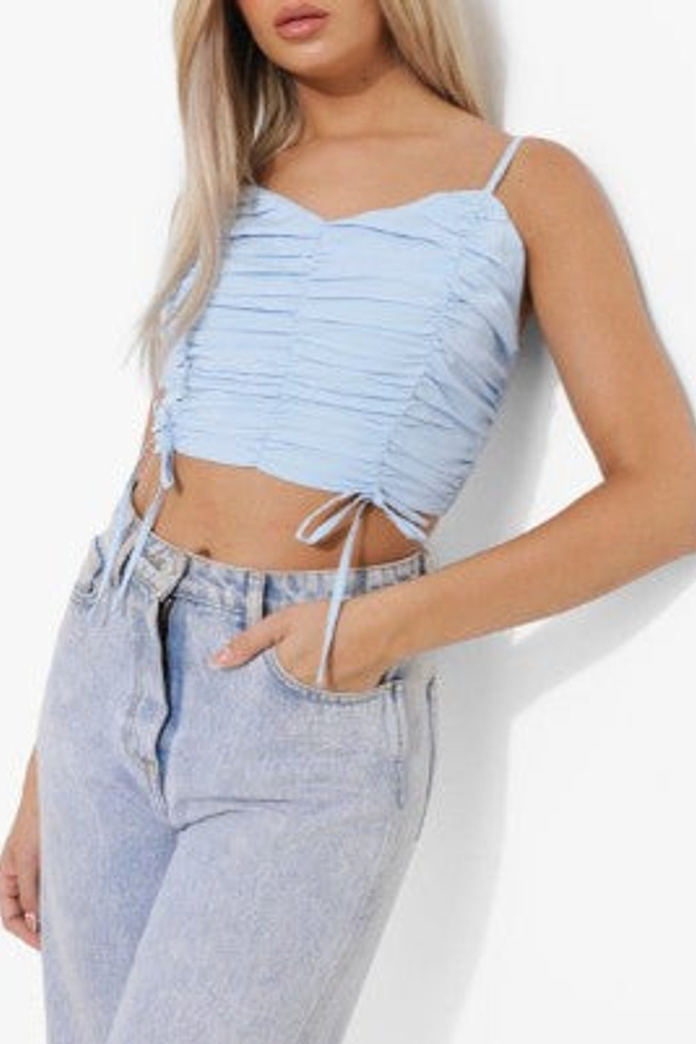 Description: Dive into the summer vibes with our Chartreuse Powder Blue Ruched Front Cami Top. The exquisite Powder Blue hue brings a refreshing touch to your ensemble, making it a must-have for the season. The diamond neckline adds a touch of sophistication, framing your collarbones beautifully.