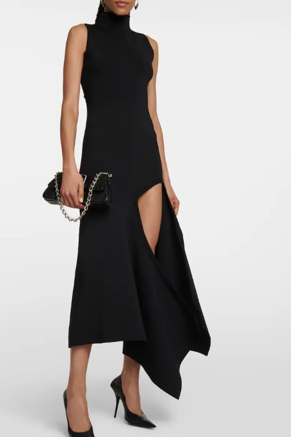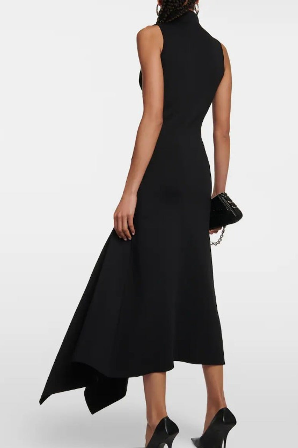 Type-Cheonan Black Dress, Color-Black, Neck type-High neck, Sleeve Length-Sleeveless, Fit-Fit & Flare, Fabric-Poly Lycra