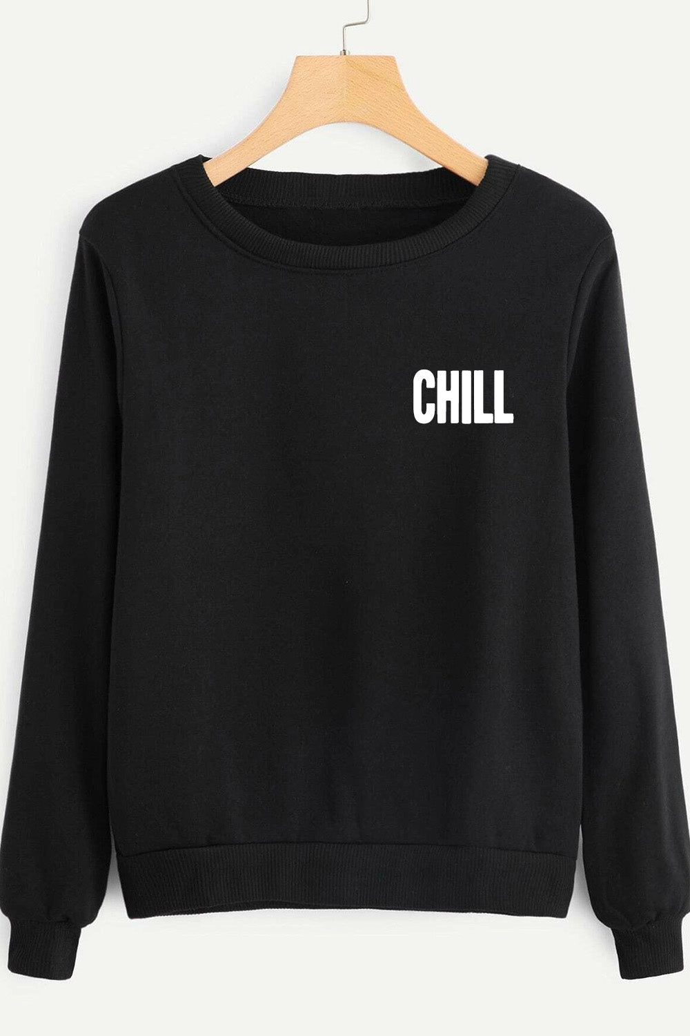Look bang on trend this winter with this super cool, black sweatshirt. Features print on the chest and round neck