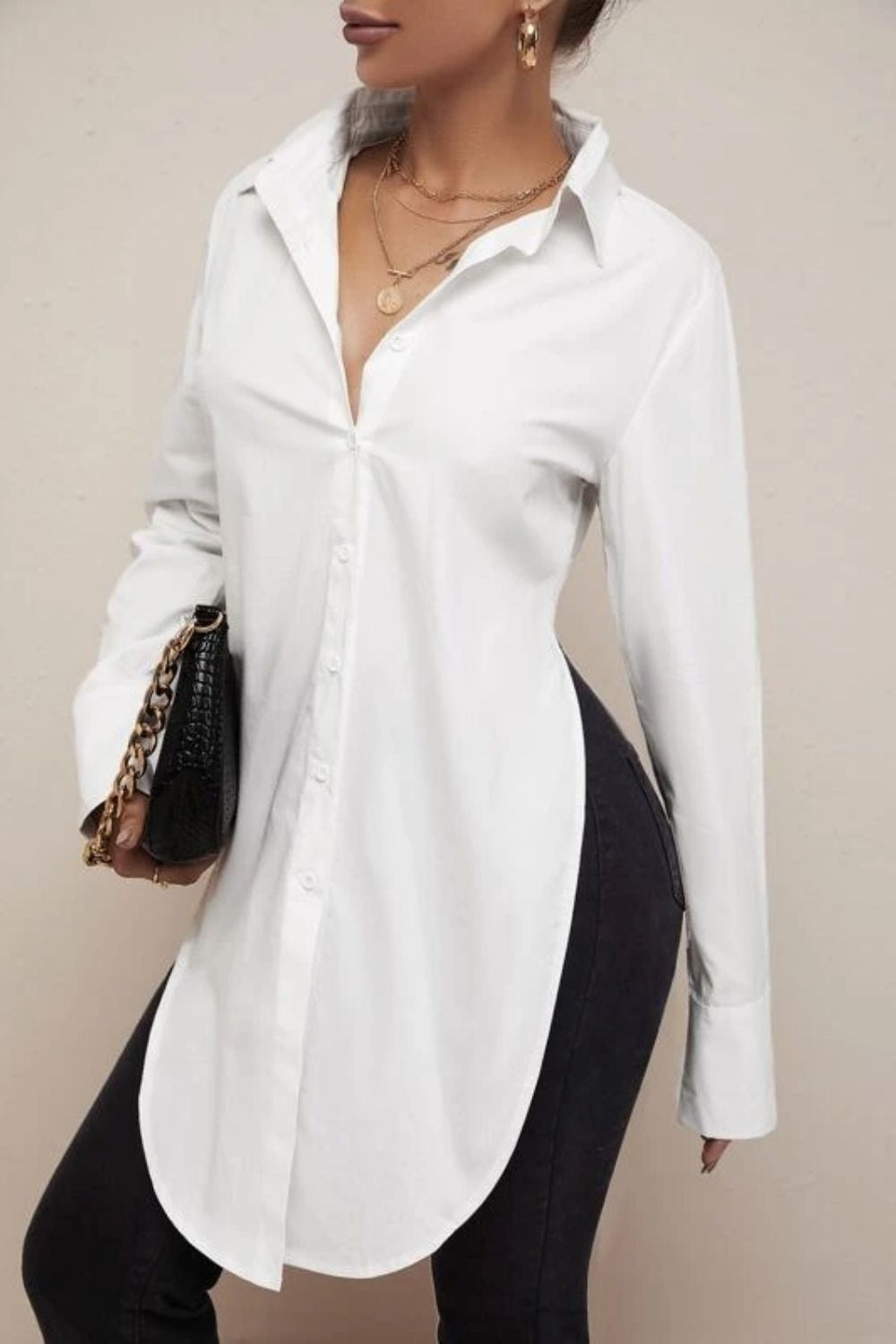 Casual Chic: Pair the Circles White Top with your go-to jeans or denim shorts for a relaxed and casual vibe. Roll up the sleeves for an added touch of coolness, and complete the look with some comfy sneakers or sandals.