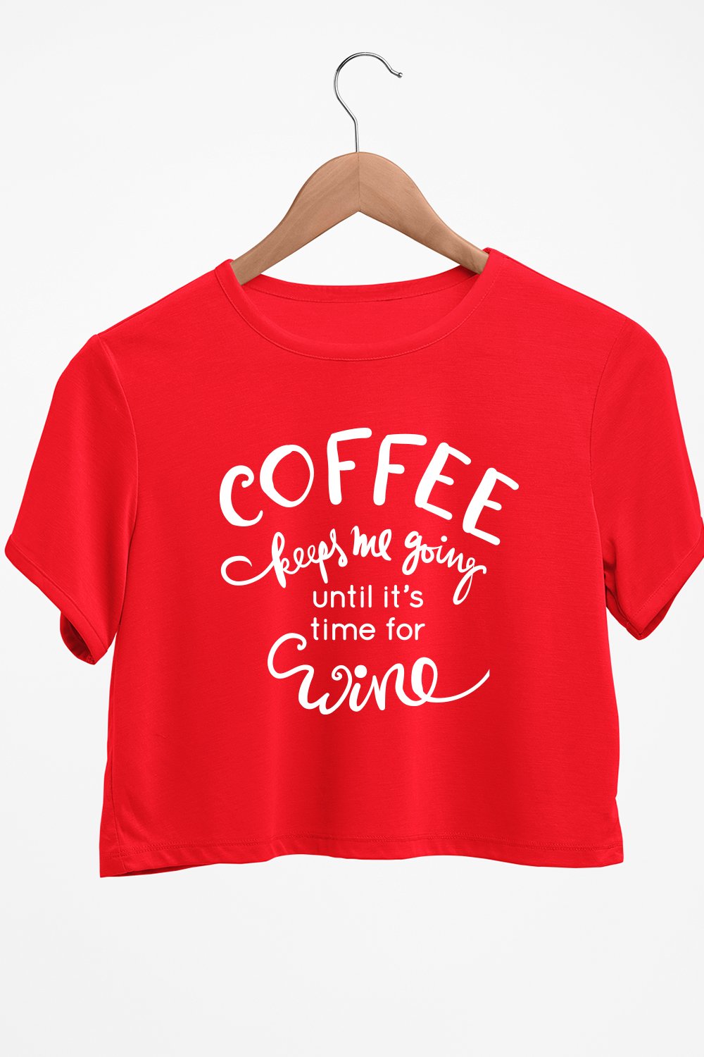 Coffee Keeps Me Going Graphic Printed Red Crop Top