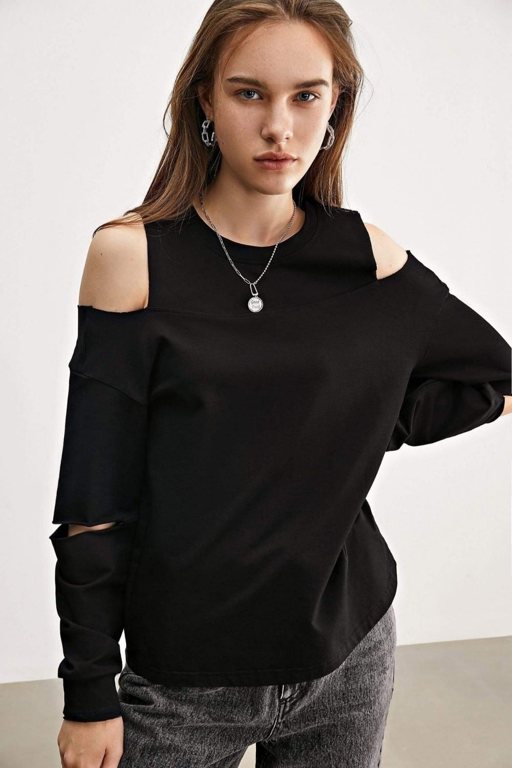 Cold Shoulder Black Tshirt