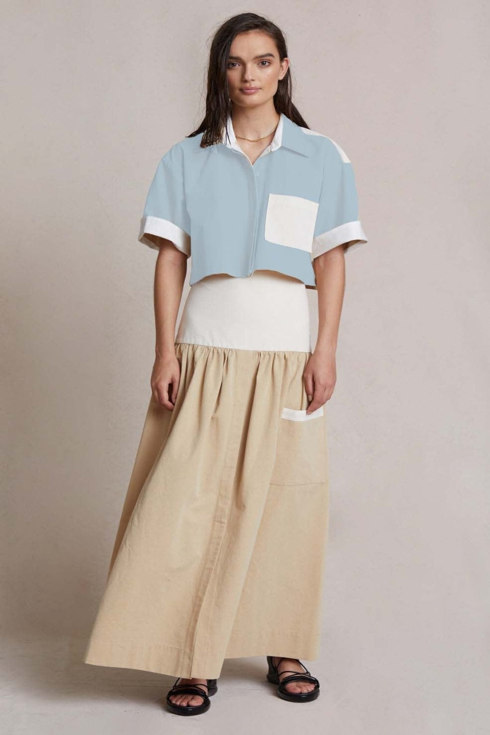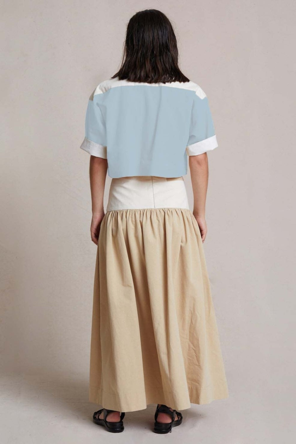 Introducing our Color Block Cool Summer Shirt, the ultimate blend of style and comfort for your summer wardrobe. Crafted from premium poplin fabric, this shirt is designed to keep you cool and comfortable even on the hottest days. With its powder blue and white color blocking, this shirt exudes a sense of effortless style and sophistication.