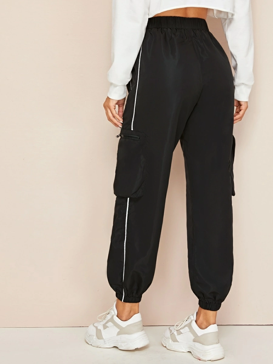 SKU:LNSContrastPipingCargoJoggersBlack-XS