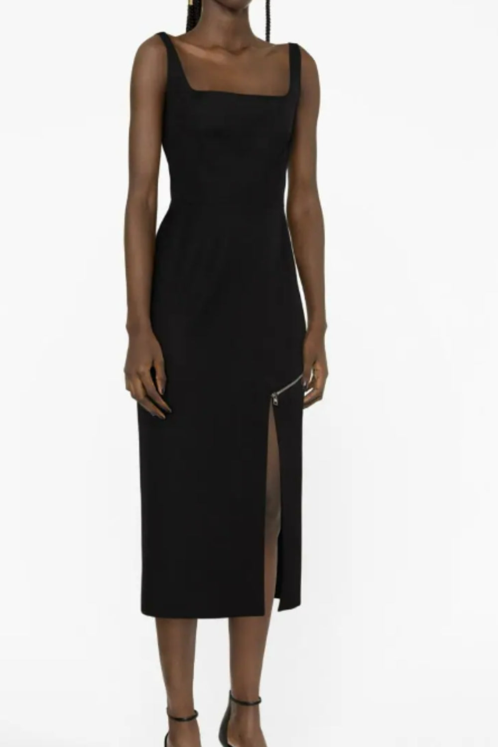 Type - Cuphea Black Dress, Color - Black, Neck type - Square neck, Sleeve Length - Sleeveless, Fit - Body Fit, Fabric - Poly Lycra