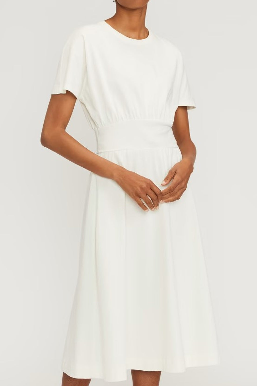 Type-Delightful White Dress, Color-White, Neck type-Round Neck, Sleeve Length-Half Sleeve, Fit-Regular, Fabric-Poly Lycra