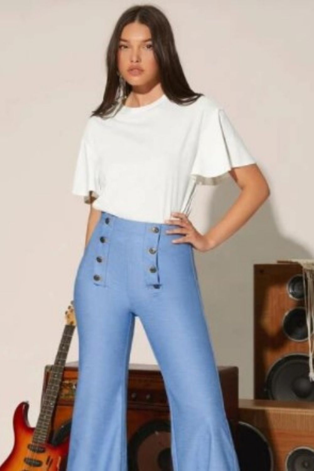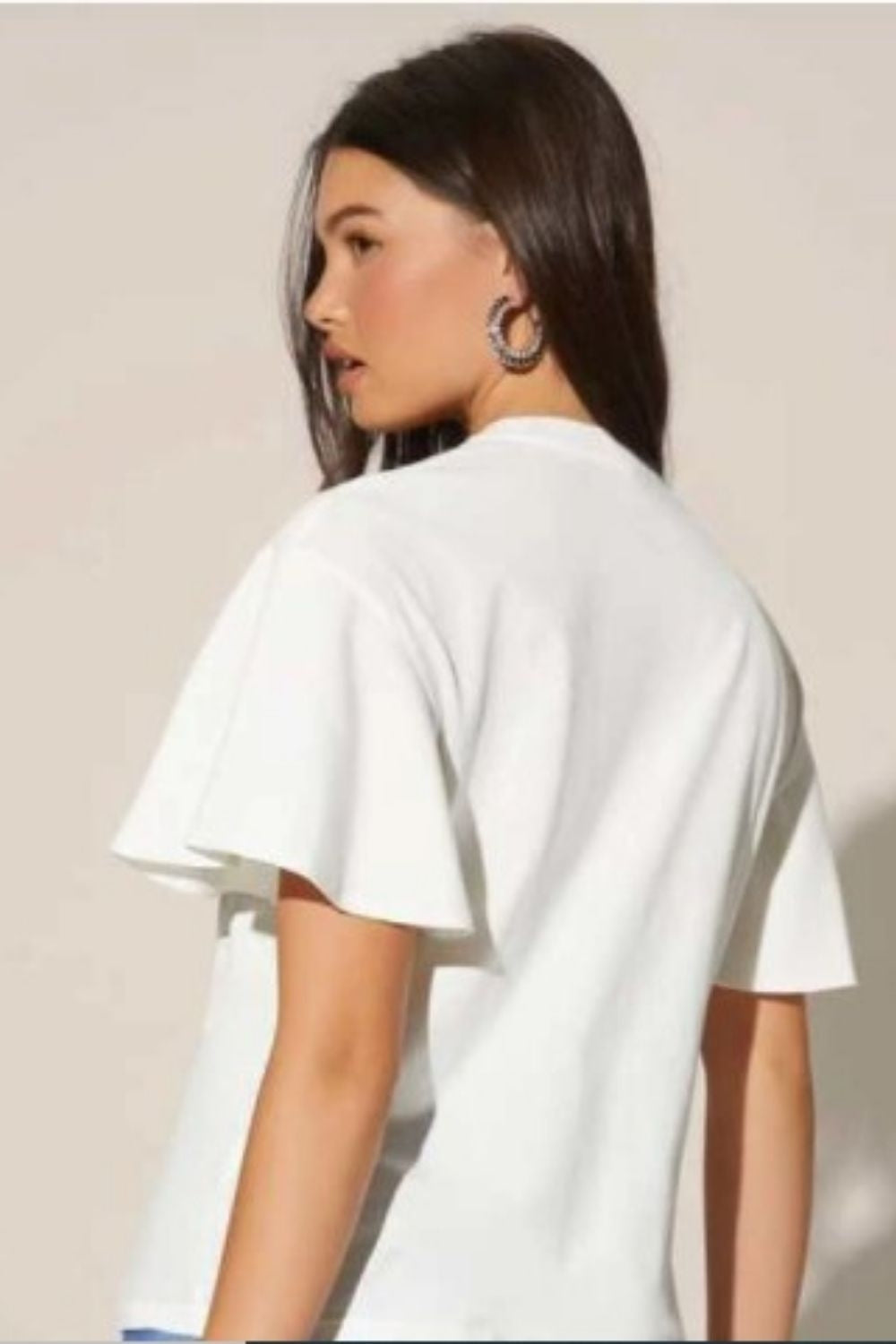 Chic Monochrome: Create a sophisticated monochrome look by pairing this white top with white skinny jeans or trousers. Add metallic accessories like a statement necklace or earrings to elevate the outfit for a night out.