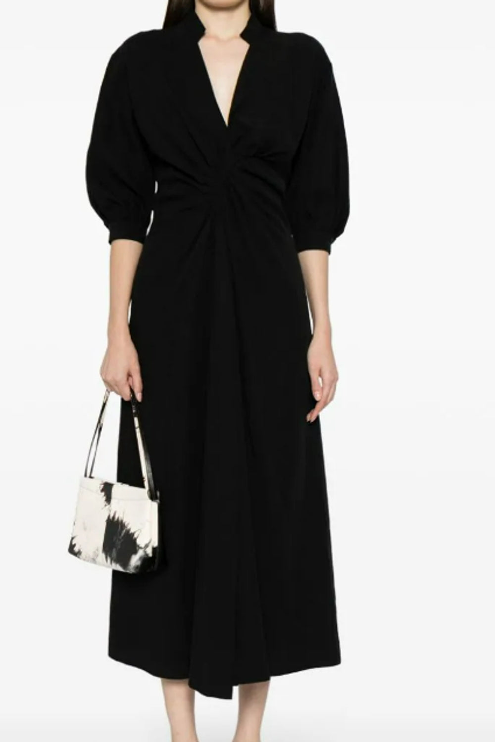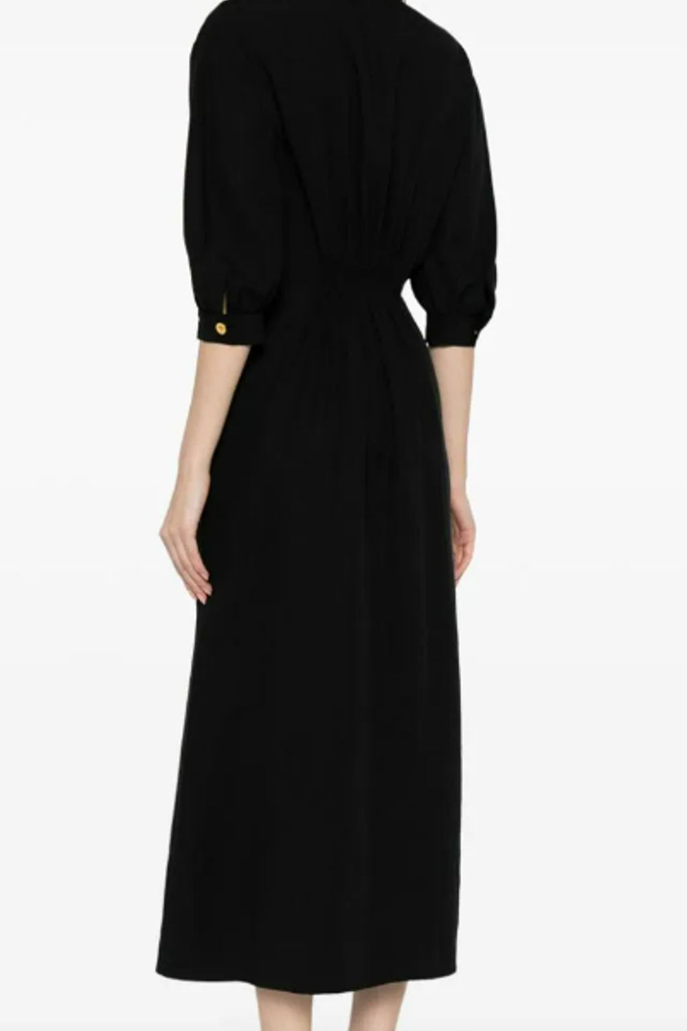 TypeDouglas Black Dress, ColorBlack, Neck typeCollar, Sleeve Length3/4th Sleeve, FitRegular, Fabric- Poplin