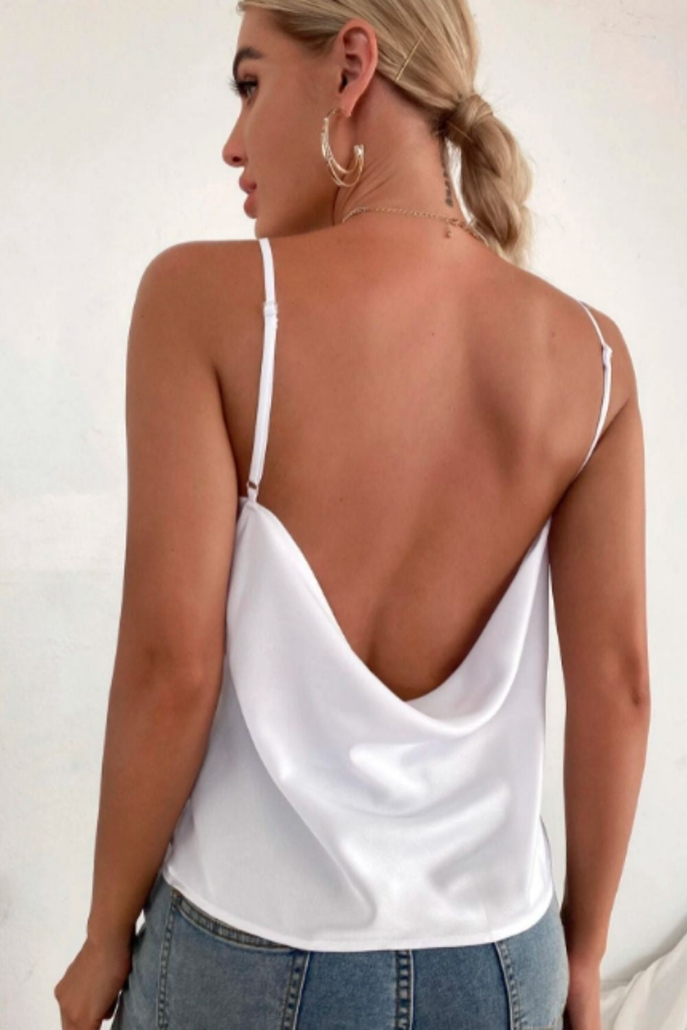 Draped Backless Satin Cami Top