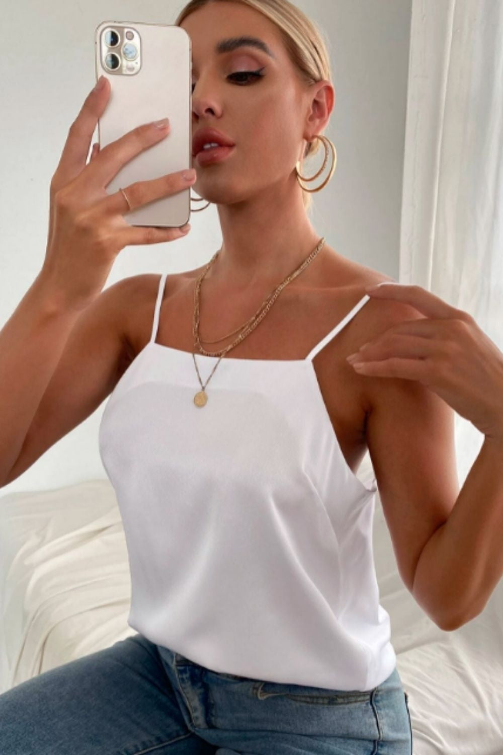 Remember, the versatility of this cami top allows you to experiment with various styles, ensuring you look effortlessly chic in any setting. Enjoy the comfort and glamour of this wardrobe essential all summer long!