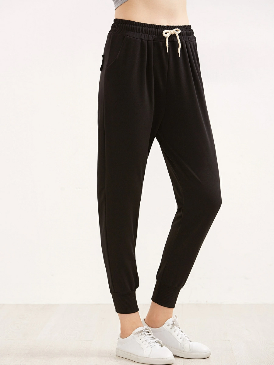 Drawstring Waist Ribbed Cuff Joggers