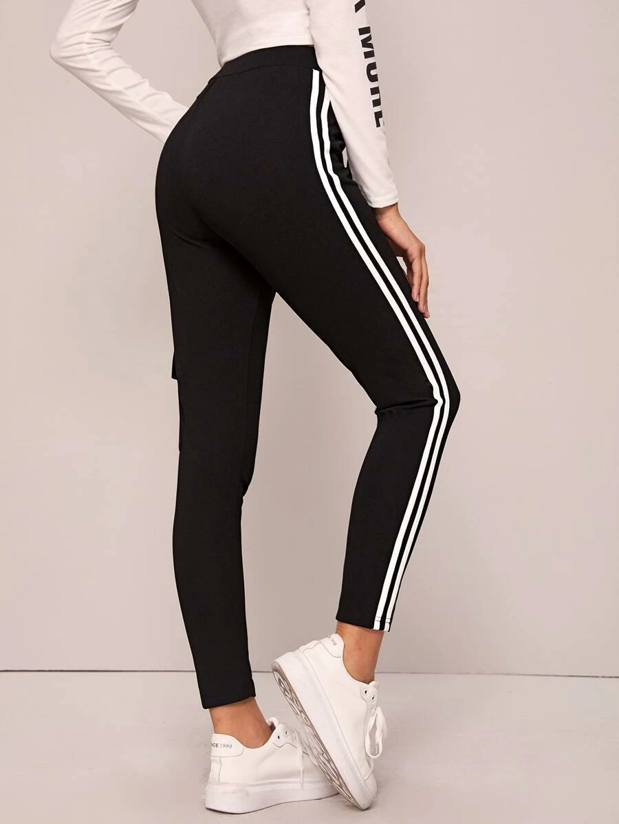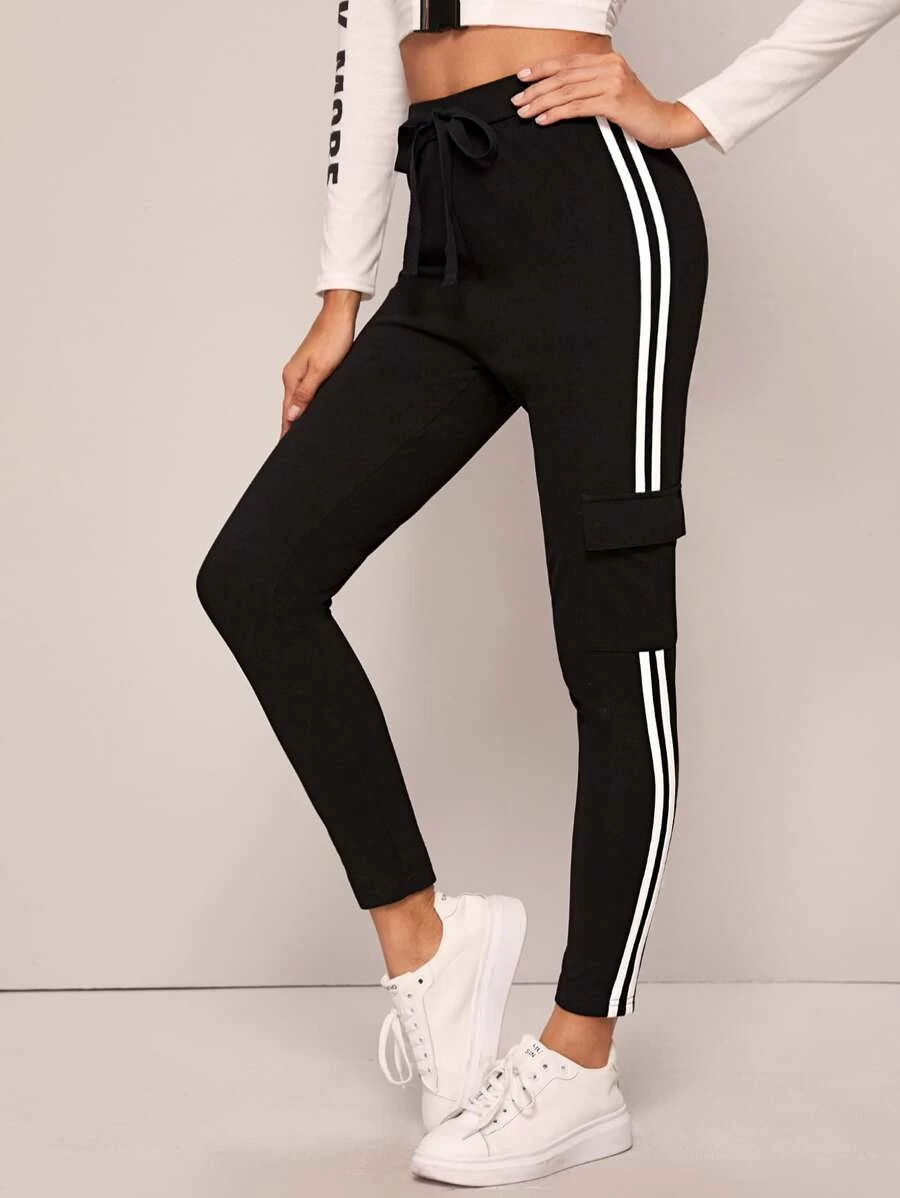 NAME- Drawstring Waist Striped Side Flap Pocket Pants
