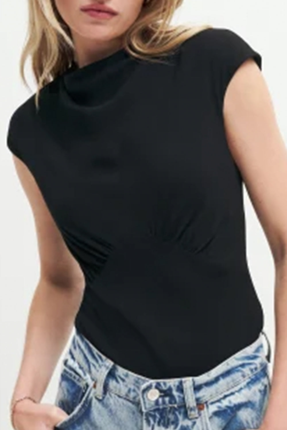 Type-Dulwich Black Top Color-Black Neck type-Close neckline Sleeve Length-Cap Sleeve Fit-Body Fit Fabric-Single Jersey