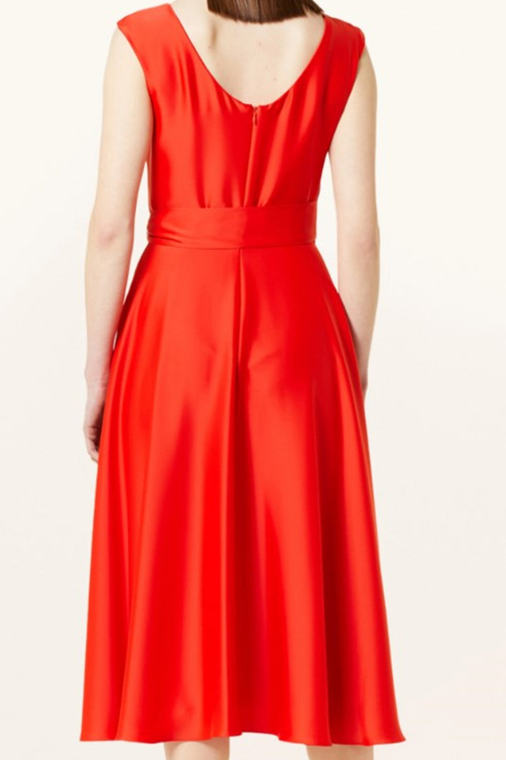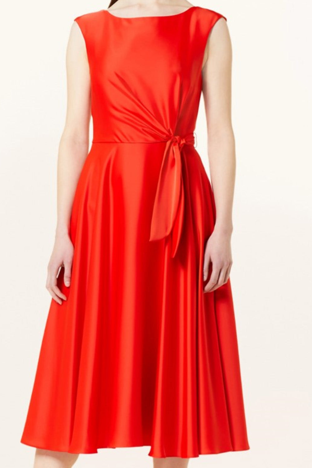 Type-Eden Red Dress, Color-Red, Neck type-Crew neck, Sleeve Length-Sleeveless, Fit-Regular, Fabric-Satin