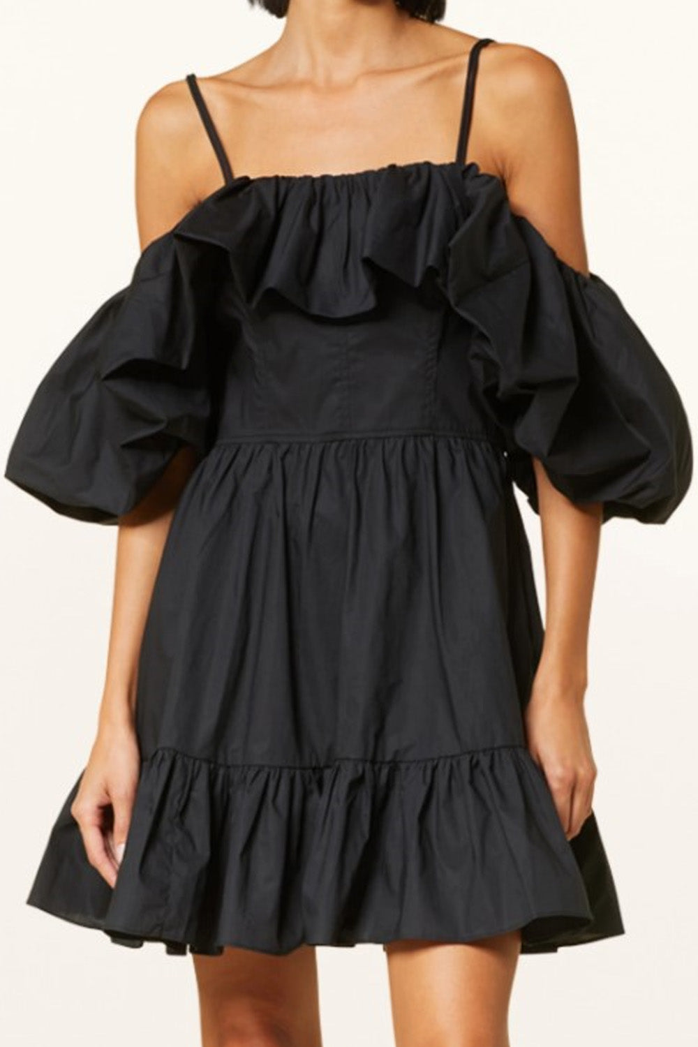Type-Edenic Black Dress, Color-Black, Neck type-Square neck, Sleeve Length-Half Sleeve, Fit-Regular, Fabric-Poplin